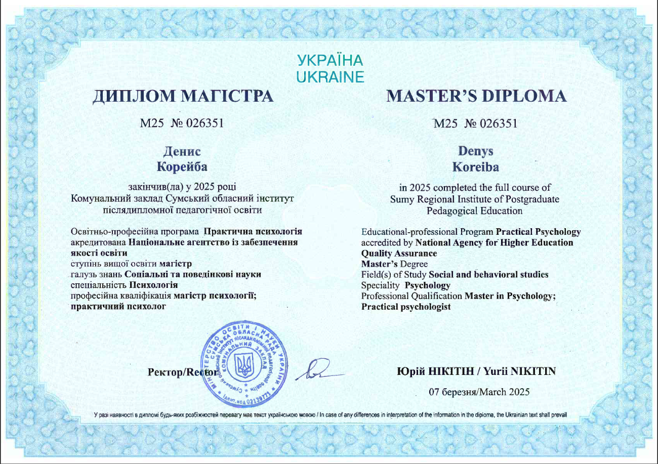 4. Магистратура в психологии (Сумской государственный институт 2023 — 2025 г.)