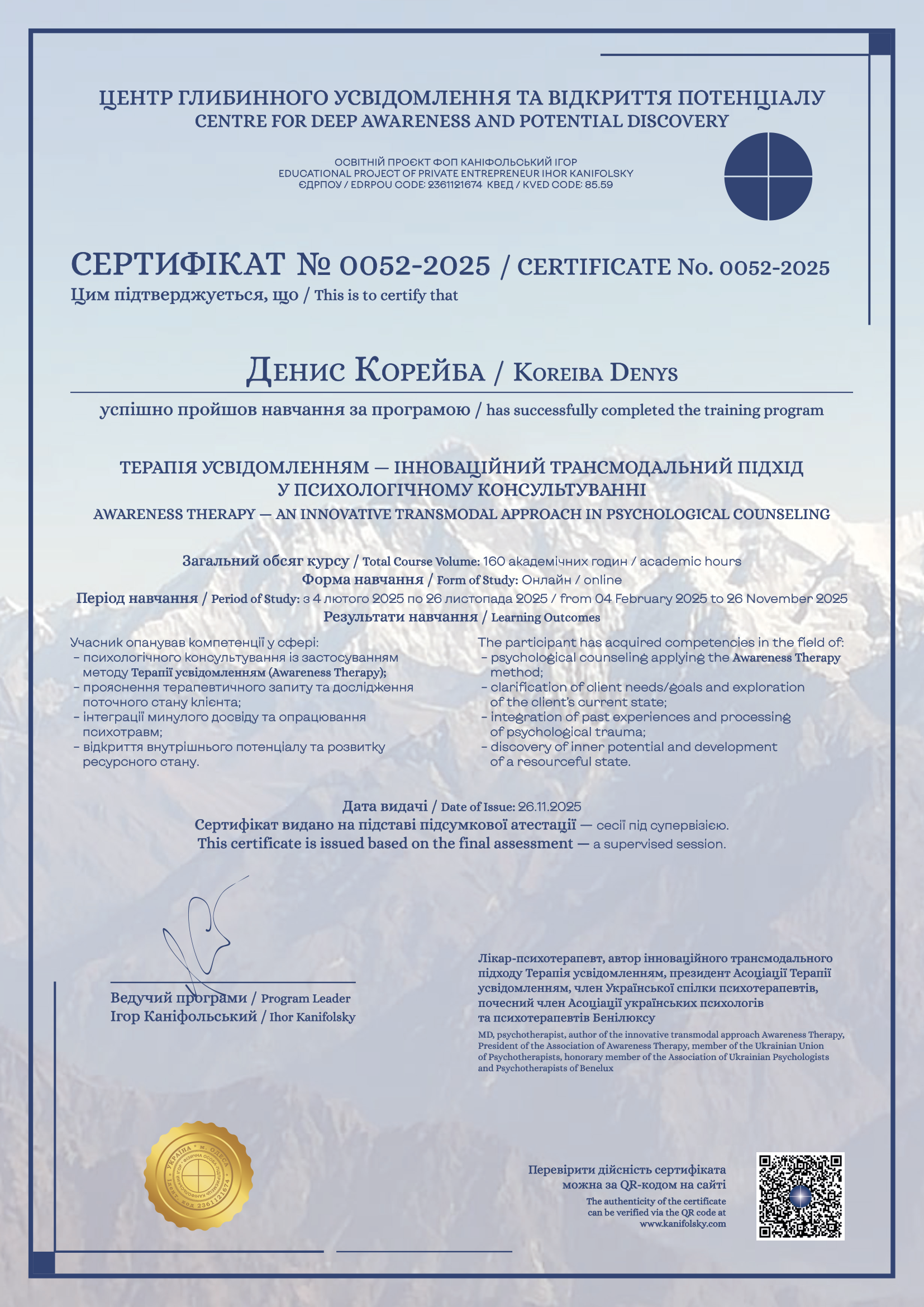 7. Терапия осознаванием Игоря Канифольского (в обучении с 2025 г.)