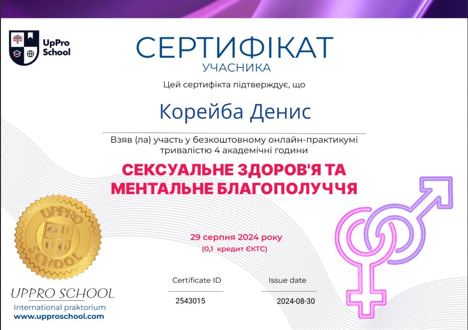 - Сертификат Сексуальное здоровье и ментальное благополучие в КПТ с 2024 года