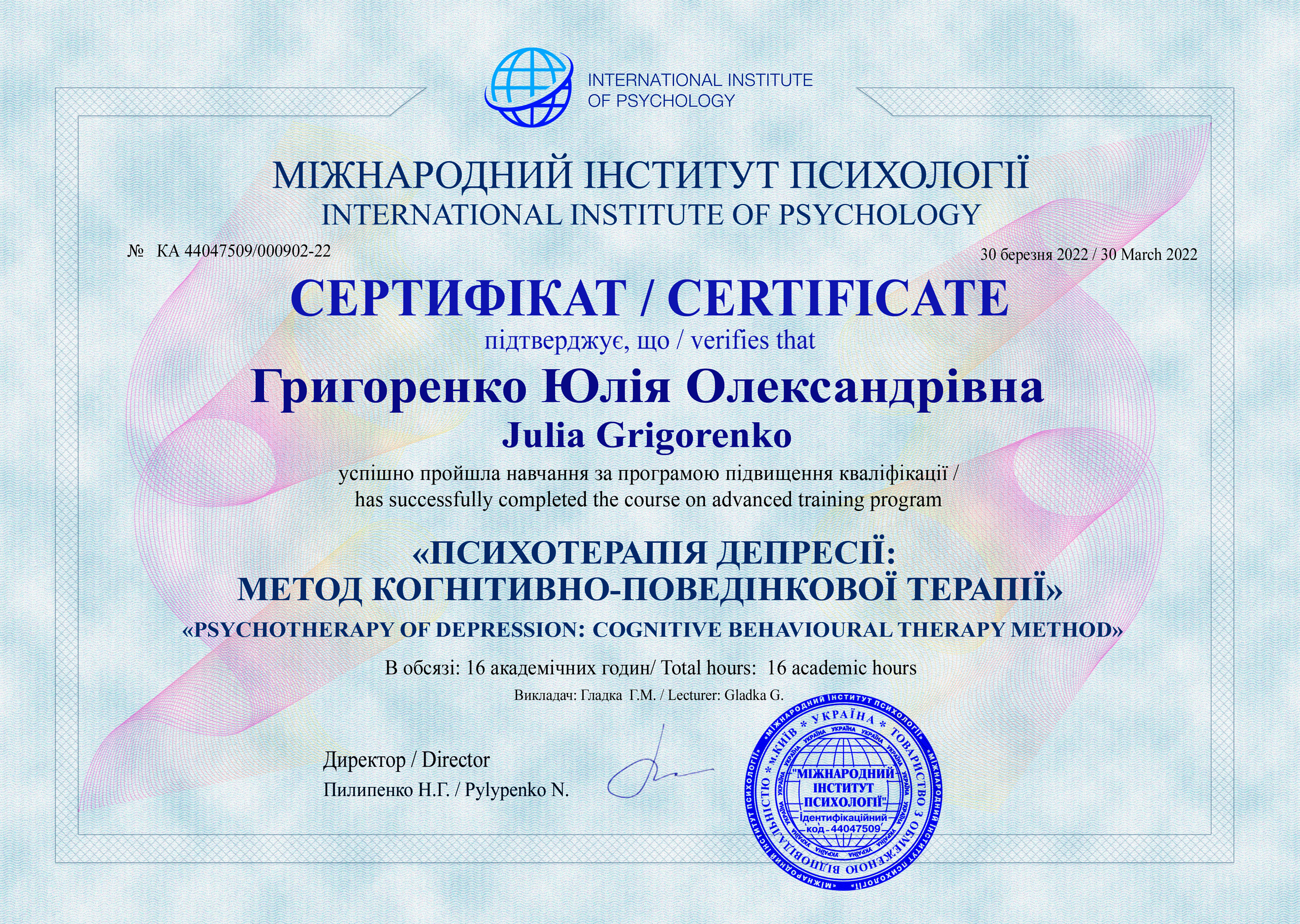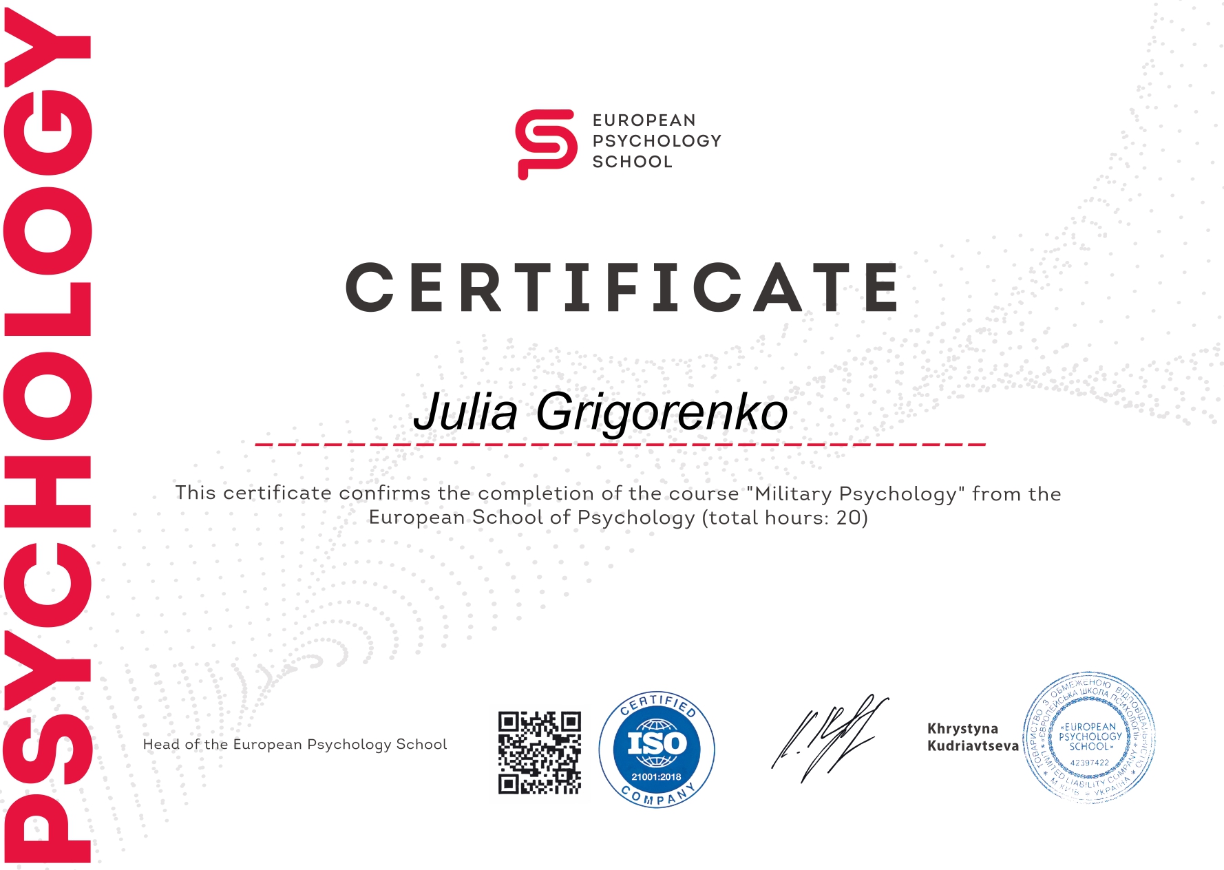 Московский институт психологии и консультирования — базовое образование психолога. Обучение пришлось прервать из-за войны в Украине, но полученные знания стали основой моей практики. Сейчас продолжаю учёбу в Европейской школе психологии, где углубляюсь в психодинамические методы.