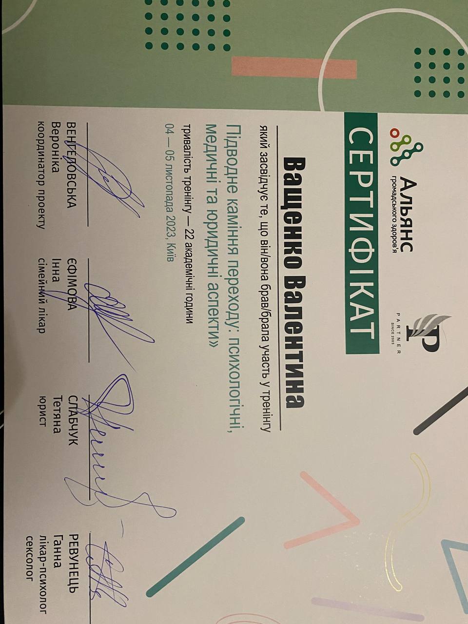 - Сертификат Підводне каміння переходу: психологічні, медичні та юридичні аспекти с 2023 года