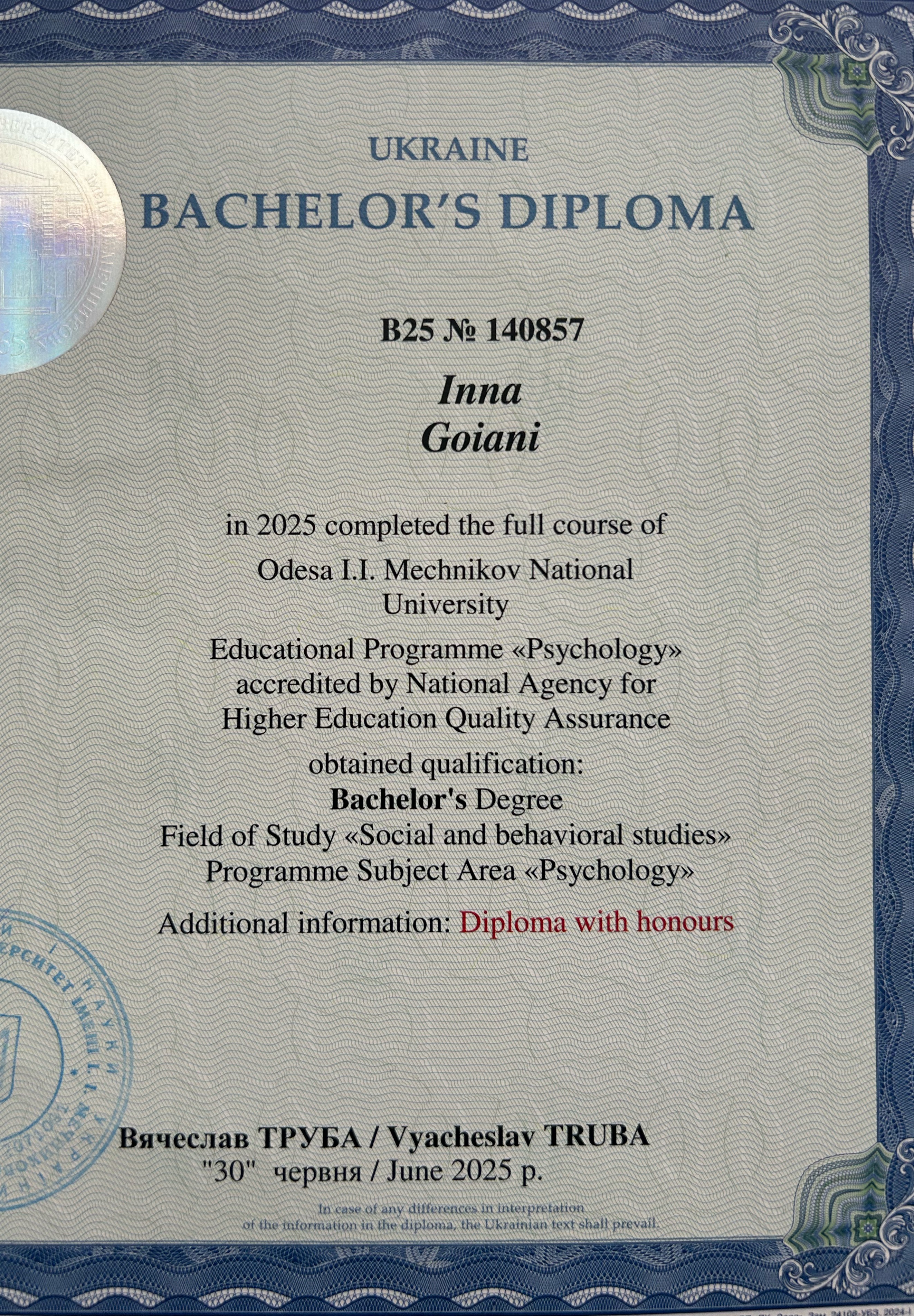 - Сертификат Диплом психолога с 2025 года
