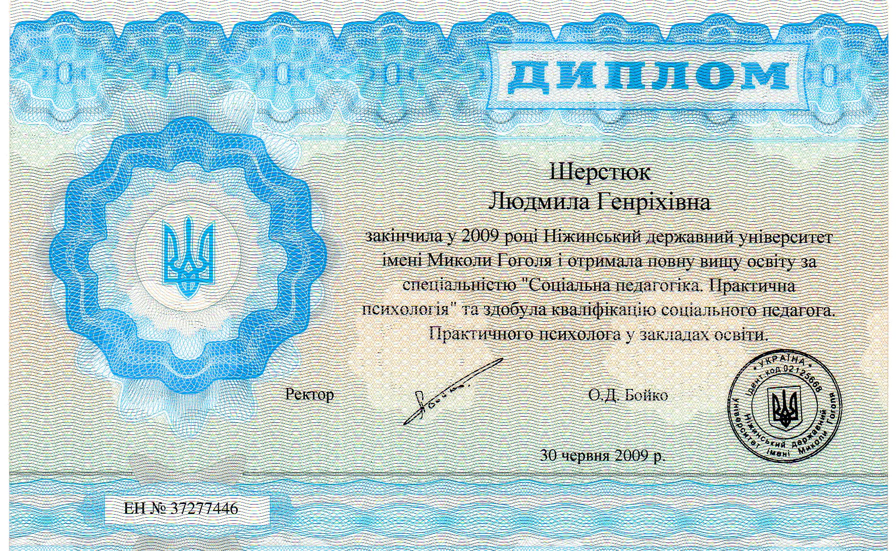 - Сертификат "Терапия последствий травм, жестокого обращения и депривации» по методу Мерелин Мюррей с 2008 года