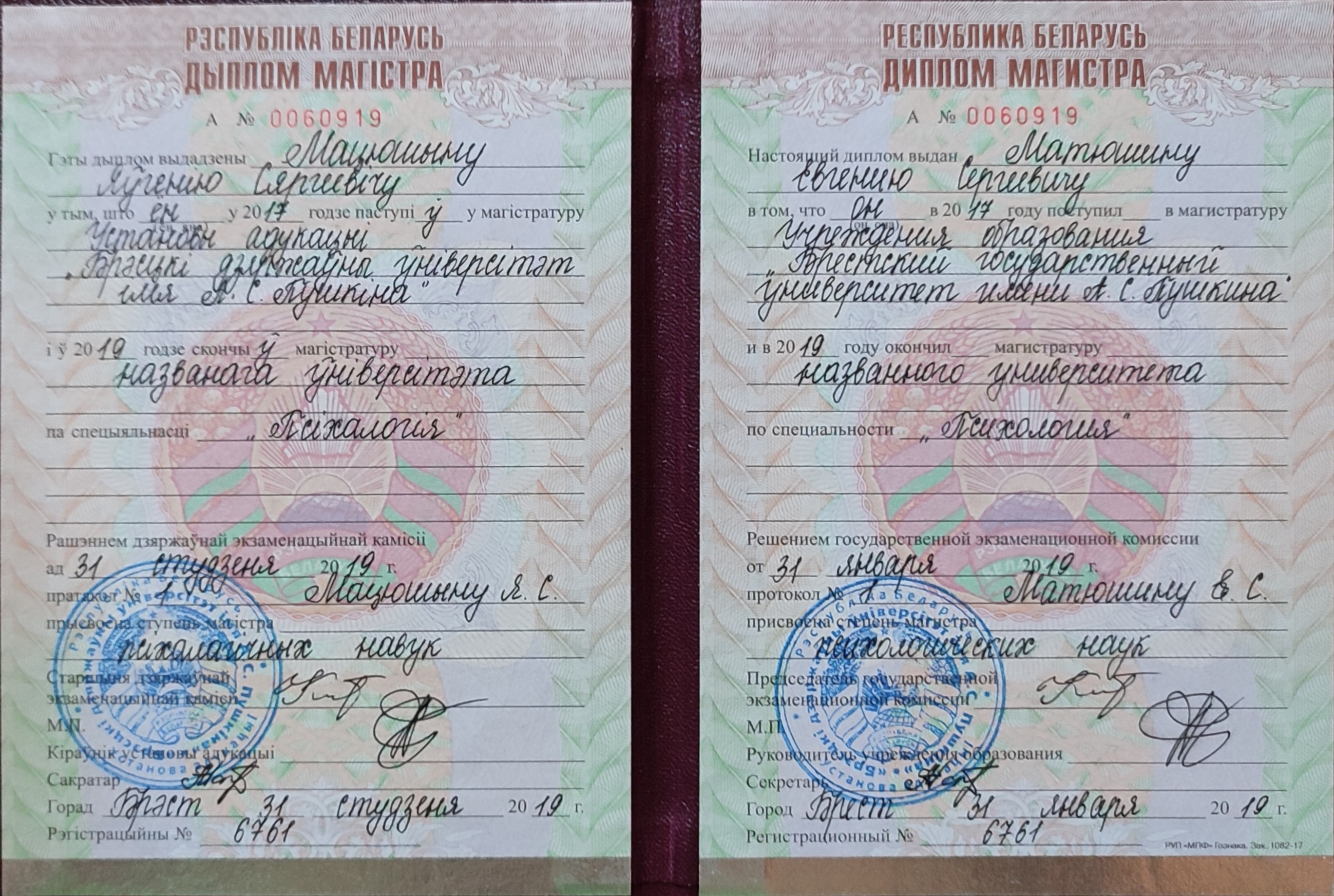 - Брестский государственный университет имени А.С. Пушкина, магистратура в 2019