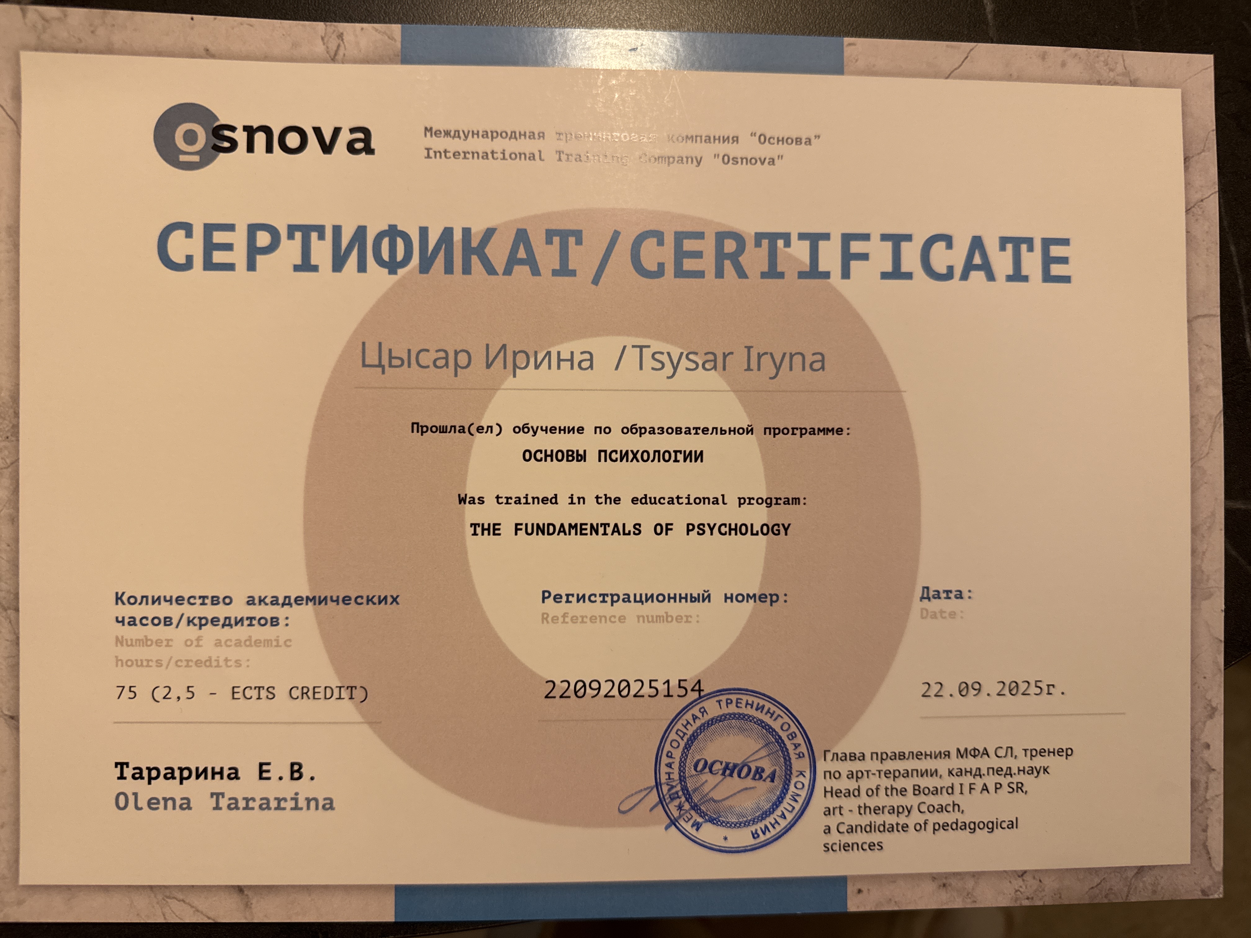 - Сертификат Основы психологии с 2025 года