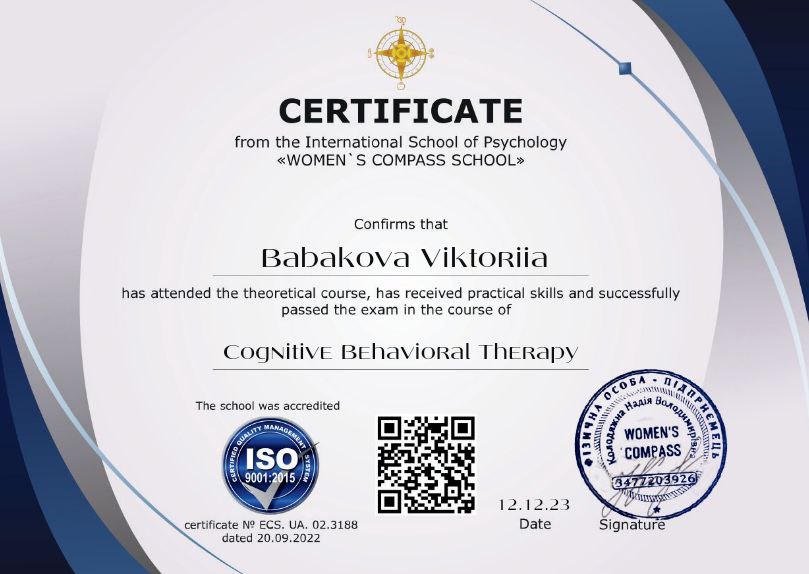 - Сертификат Women`s Compass School с 2023 года
