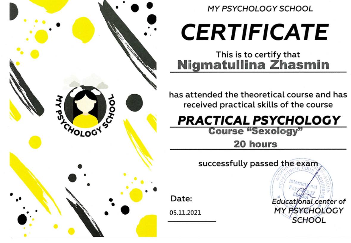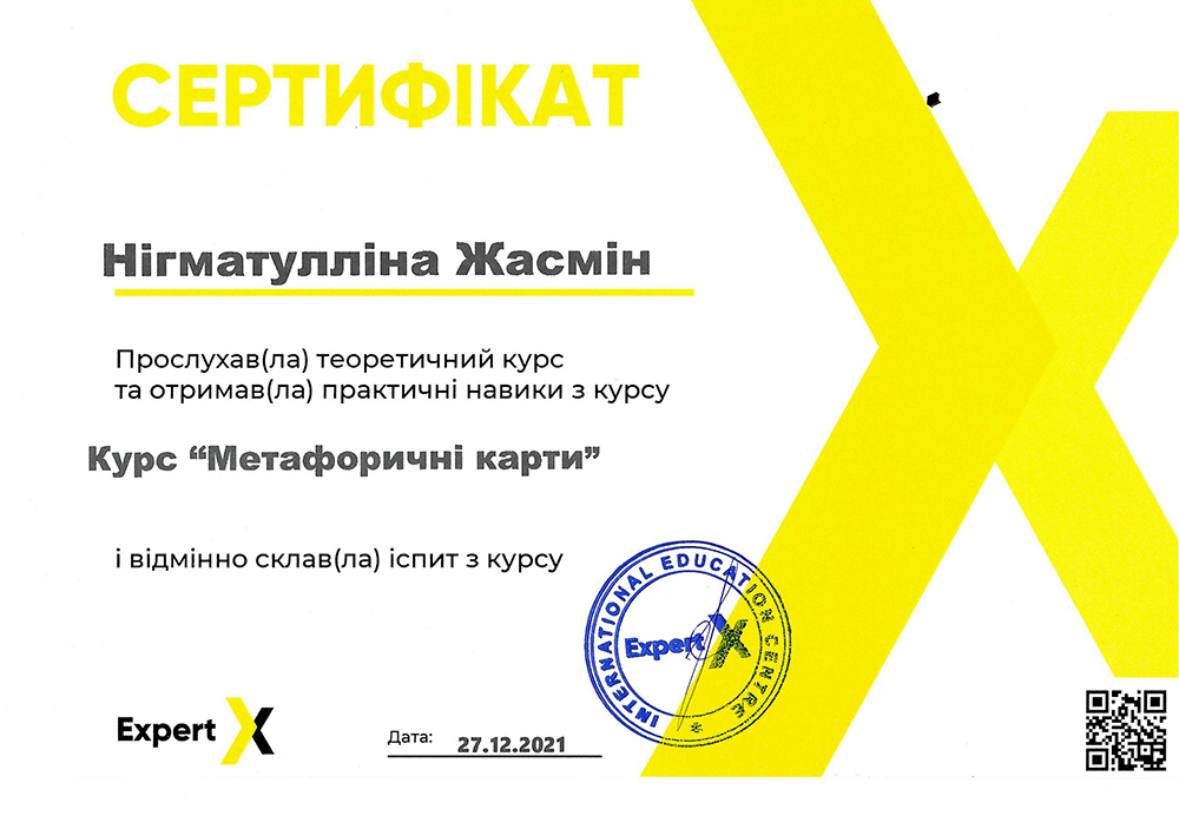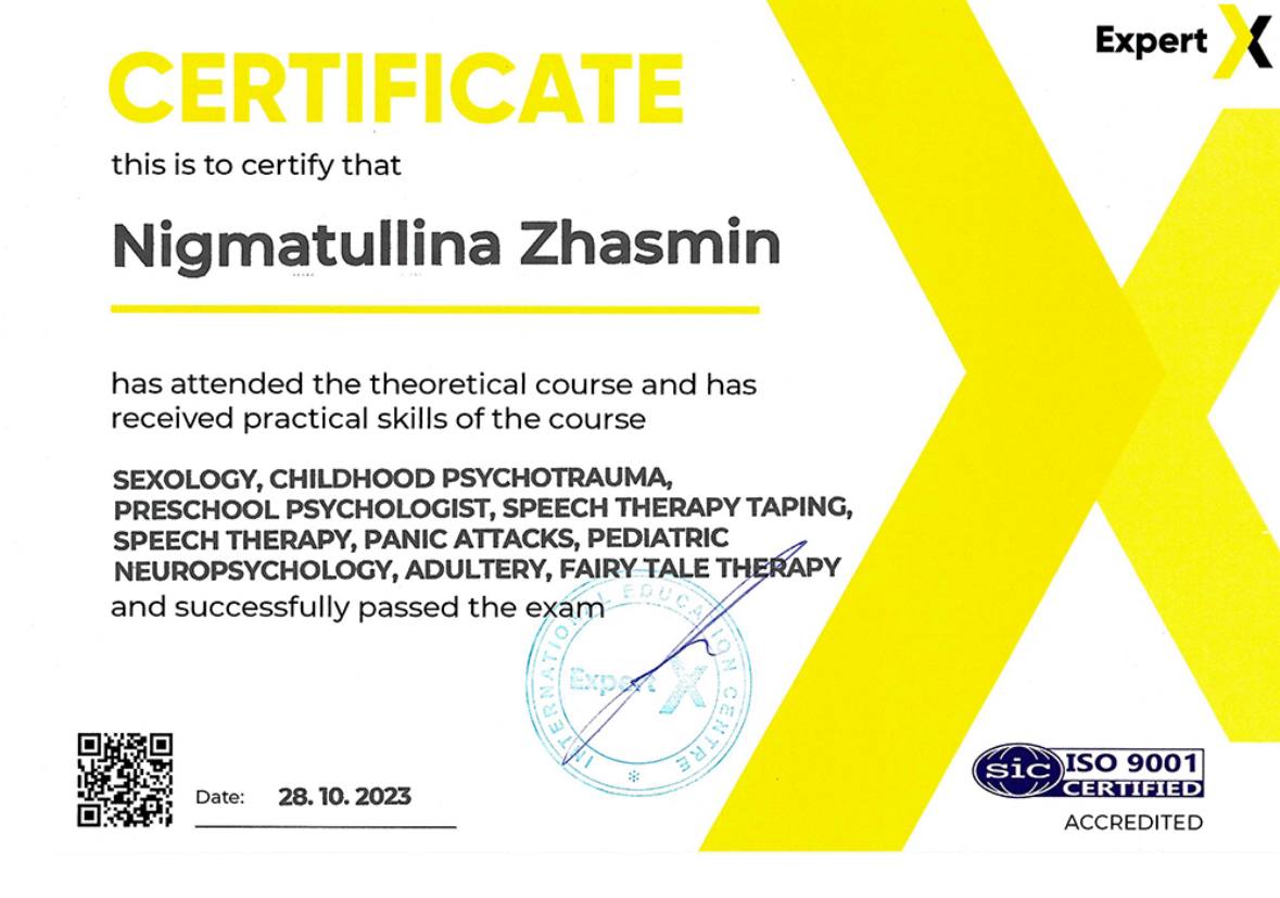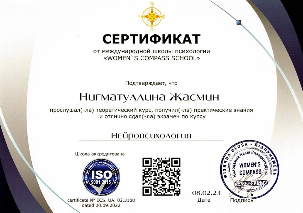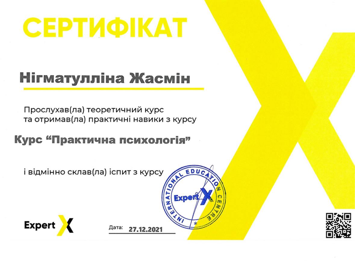 - Сертифікат "Клінічна нейропсихологія: Дитяча та доросла" з 2021 року