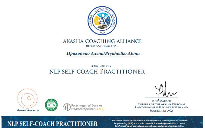 - Сертифікат Селф-коучинг, Академія Джека Макані. з 2021 року