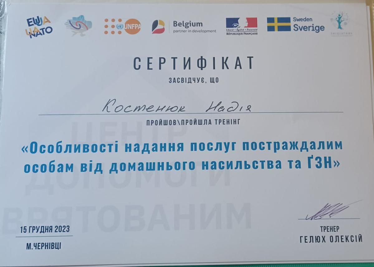 Сертифікат Особливості надання послуг постраждалим особам від домашнього насильства та ГЗН з 2023 року
