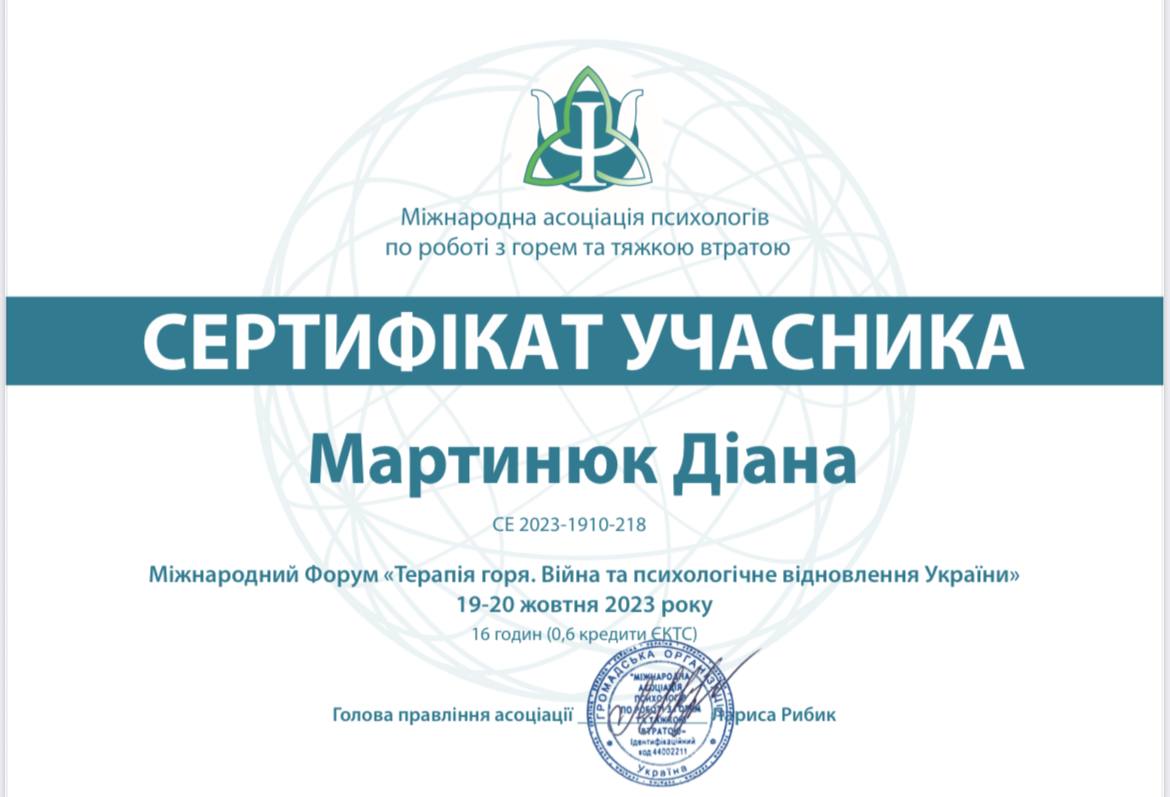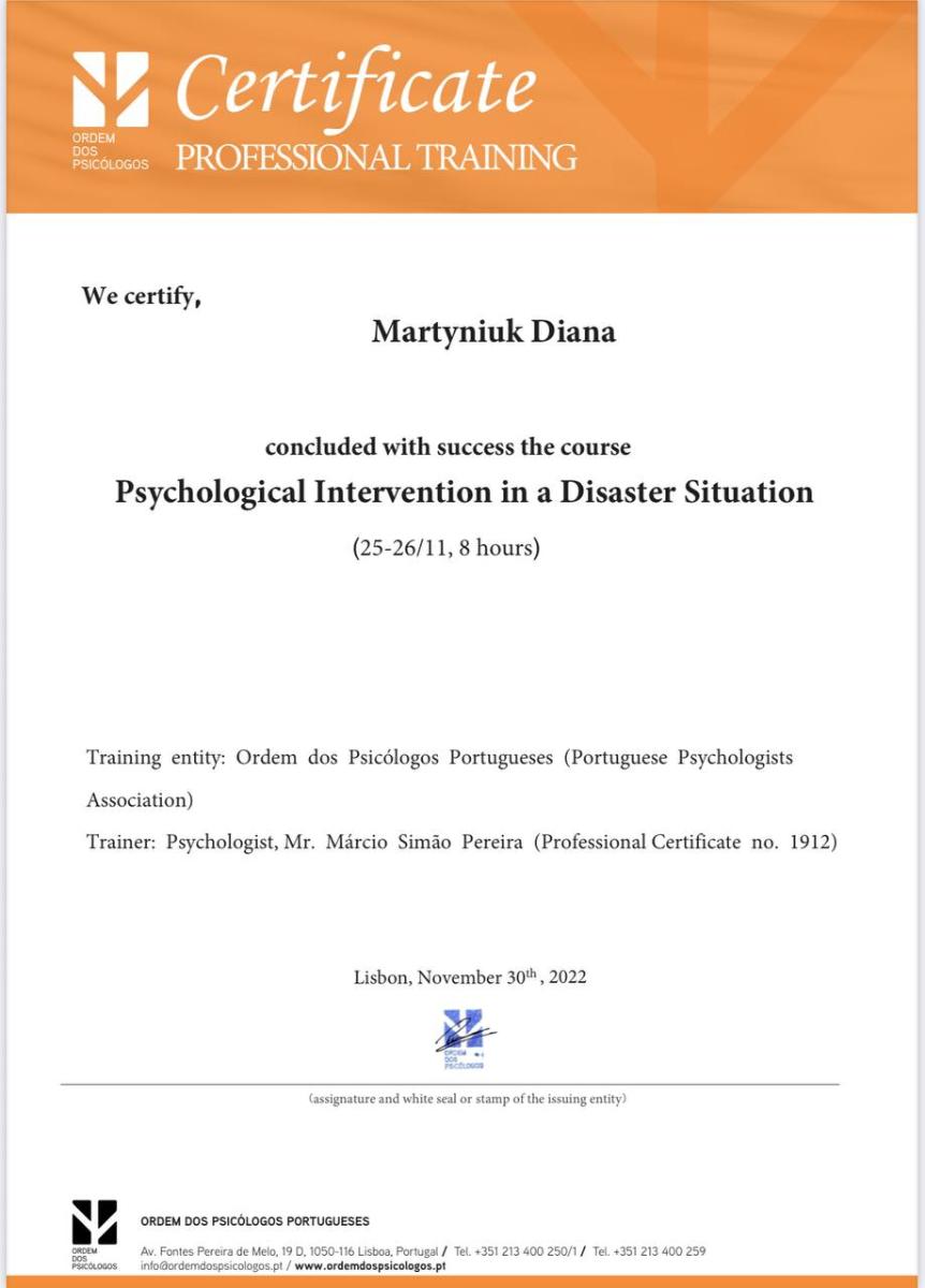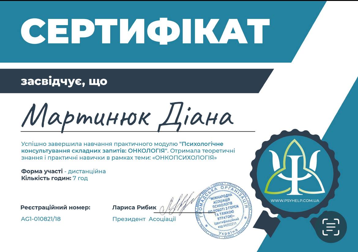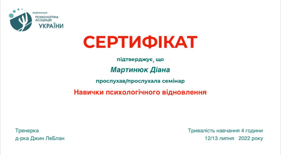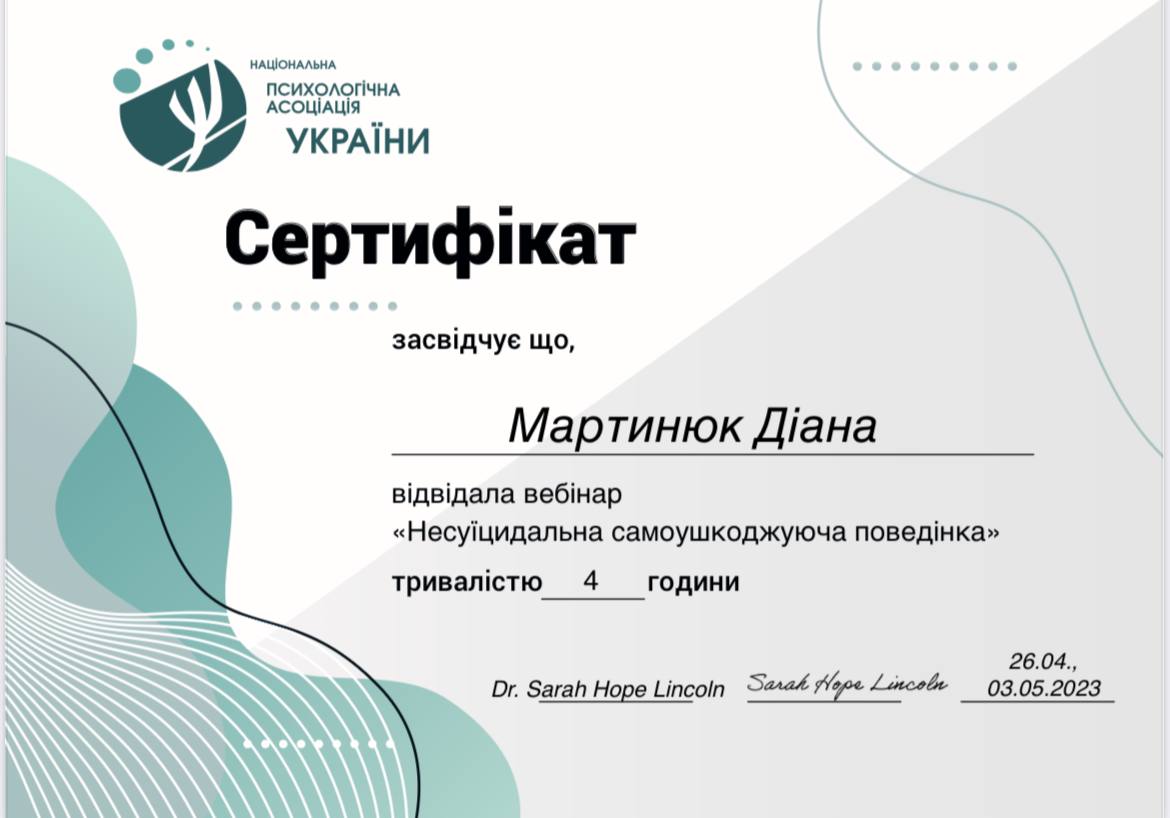 Привіт! Я маю понад 5 років досвіду роботи у сфері психологічного консультування та психотерапії. Я - той фахівець, поруч з яким можна говорити про болюче без остраху. У своїй роботі я створюю безпечний терапевтичний простір, де кожен клієнт може бути почутим та безумовно прийнятим. До мене звертаються з такими проблемами: тривога, нав'язливі думки, страх невизначеності; депресивні стани, апатія, емоційне виснаження; робота із травмою, опрацювання травматичного досвіду; робота із втратою, ускладнена скорбота; проблеми самооцінки, невпевненість у собі, внутрішня критика; складності в комунікації, міжособистісних стосунках; складності в робочих стосунках, самореалізації; професійне емоційне вигорання. Я є сертифікованим членом професійних психологічних асоціацій (НПА, УПА, УСТА, ЄАТА, EFPA, IUPS), входжу до реєстру психологів, що залучаються до кримінальних проваджень та безперервно підвищую свою кваліфікацію. Працюю в методі транзакційного аналізу. Робота зі мною - це завжди турботливо, екологічно та ефективно. Запрошую знайти вихід: ВАШ, а не правильний.