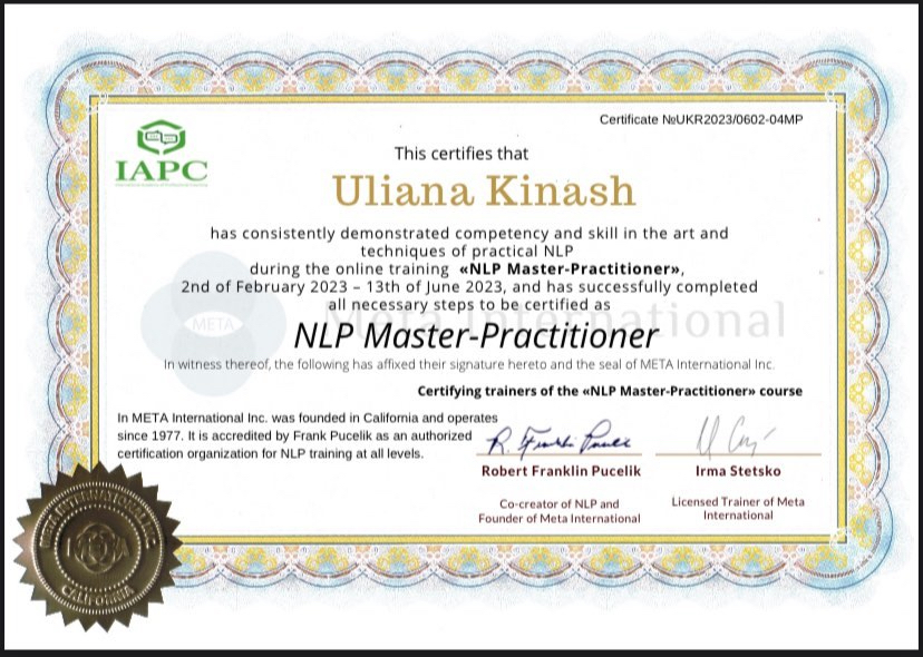 • Міжнародна академія IAPC, НЛП Майстер в 2023