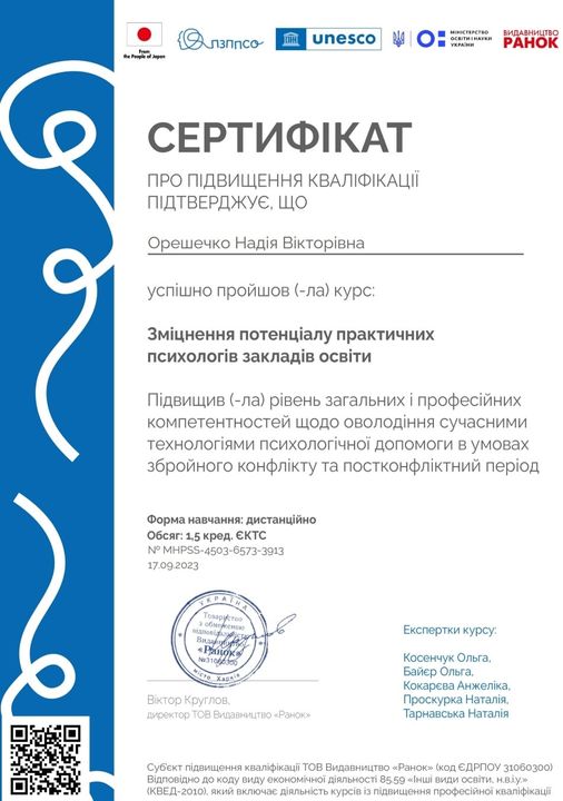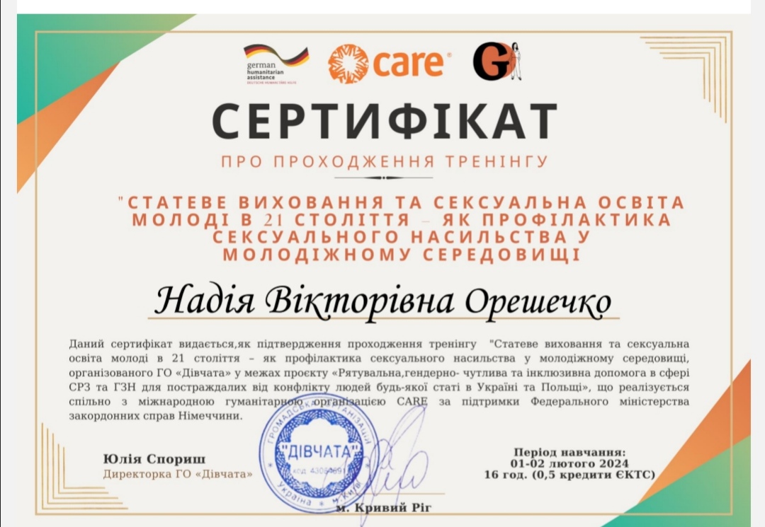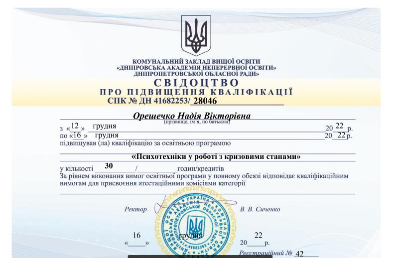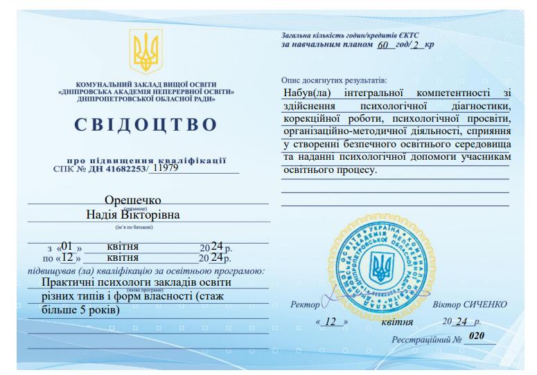 - кризовий психолог - м. Кривий Ріг (2023 - 2025)