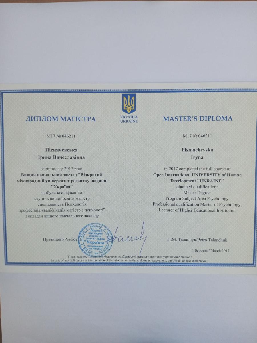 Мене звати Ірина, я психолог, магістр психології. Працюю в такому напрямку психотерапії як КПТ. Маю відповідний сертифікат проходження навчального курсу у даному напрямку.