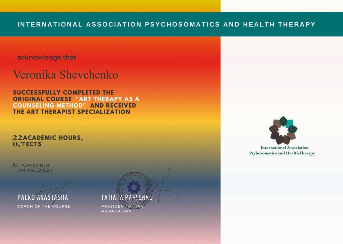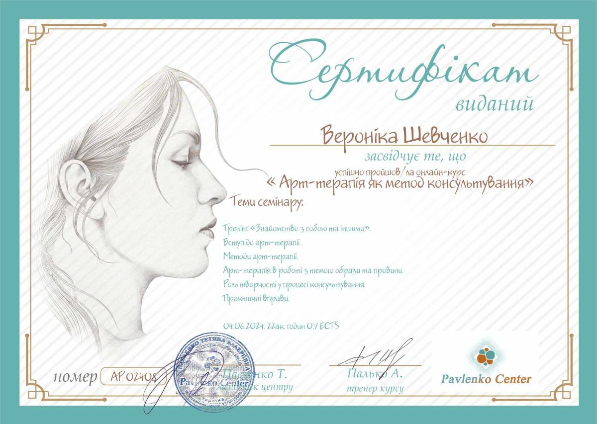 - Сертифікат Арт-терапія як метод консультування з 2024 року