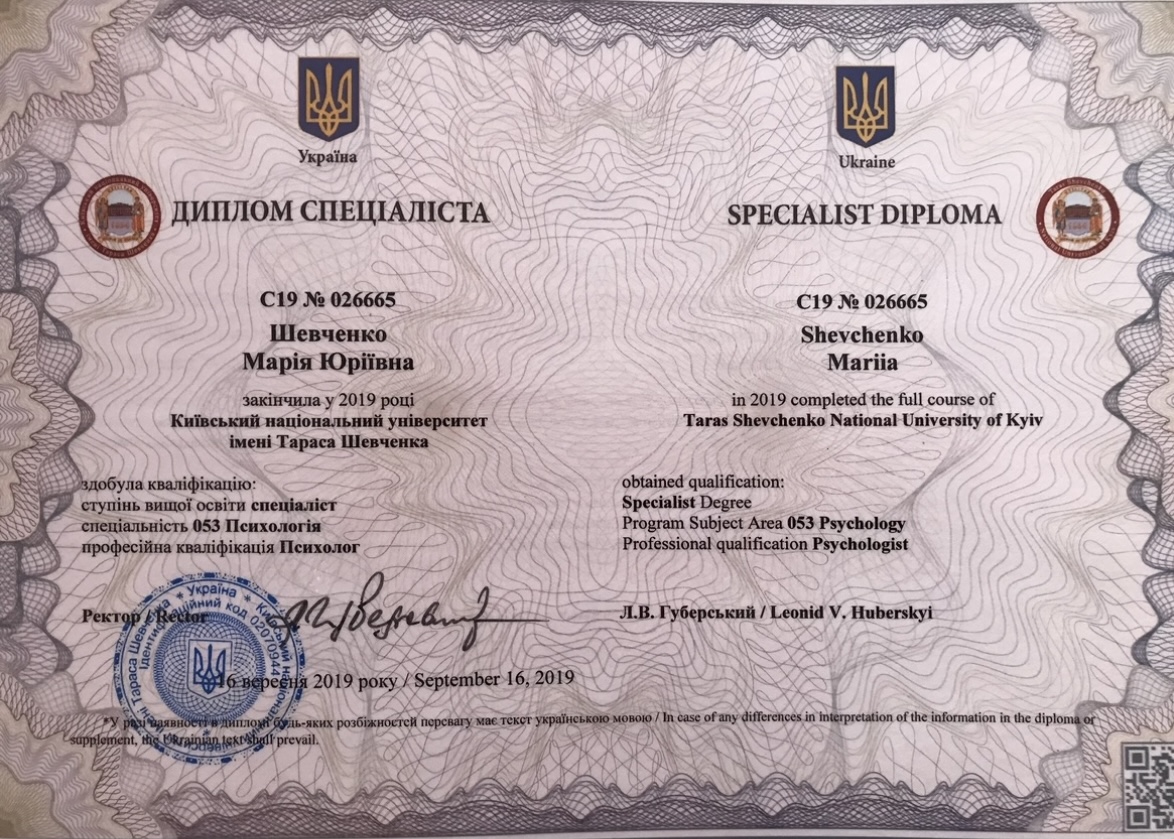 Мене звати Марія Шевченко, я психолог, кандидат у психотерапевти.
