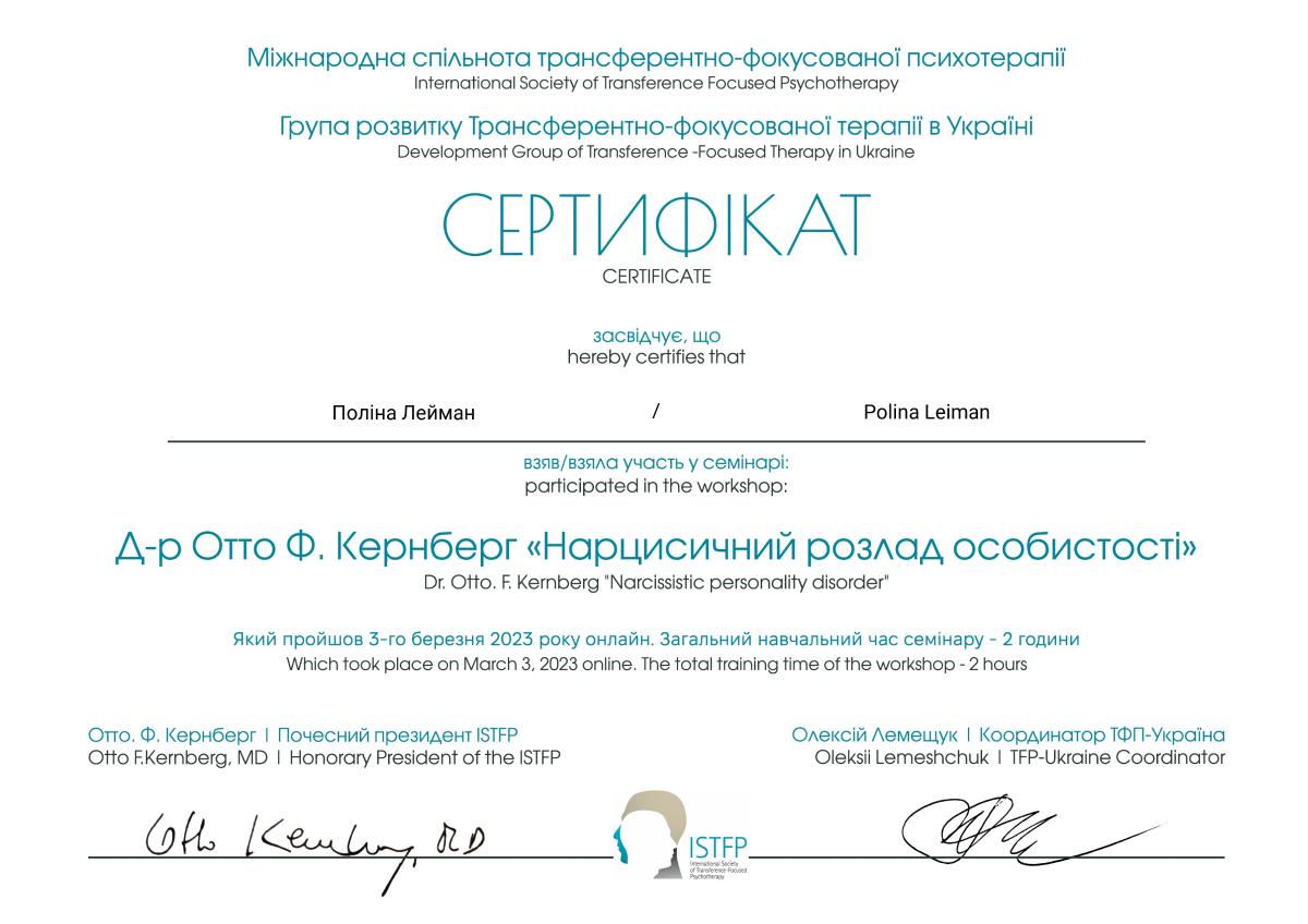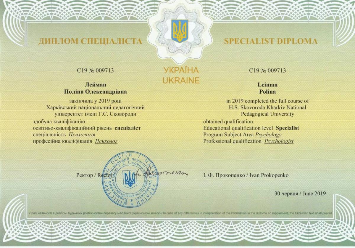 - практикуюча психологиня - ФОП Лейман (2019)