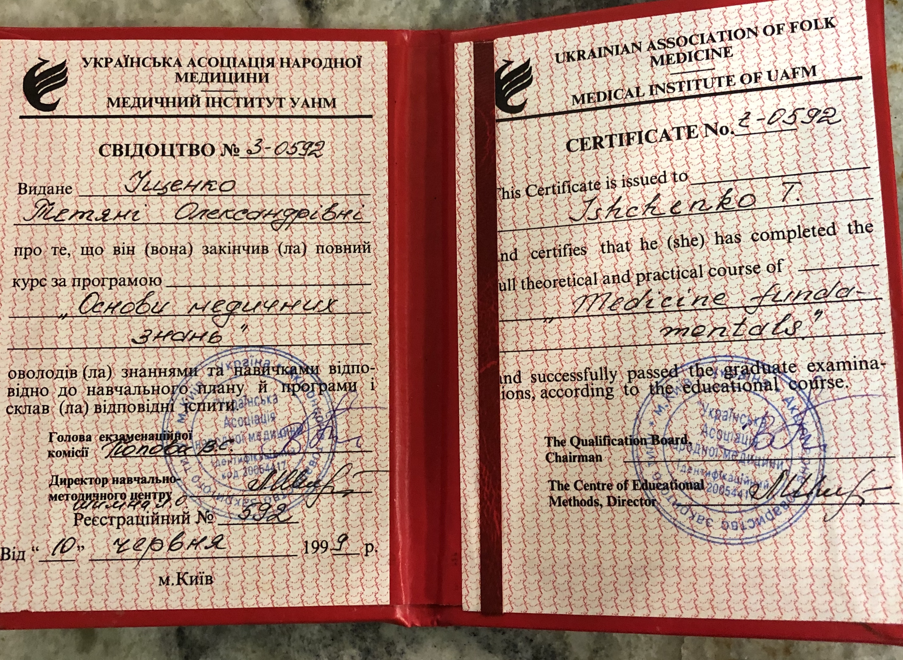 - Українська асоціація народної медицини, повний курс «Основи медичних знань» в 1999