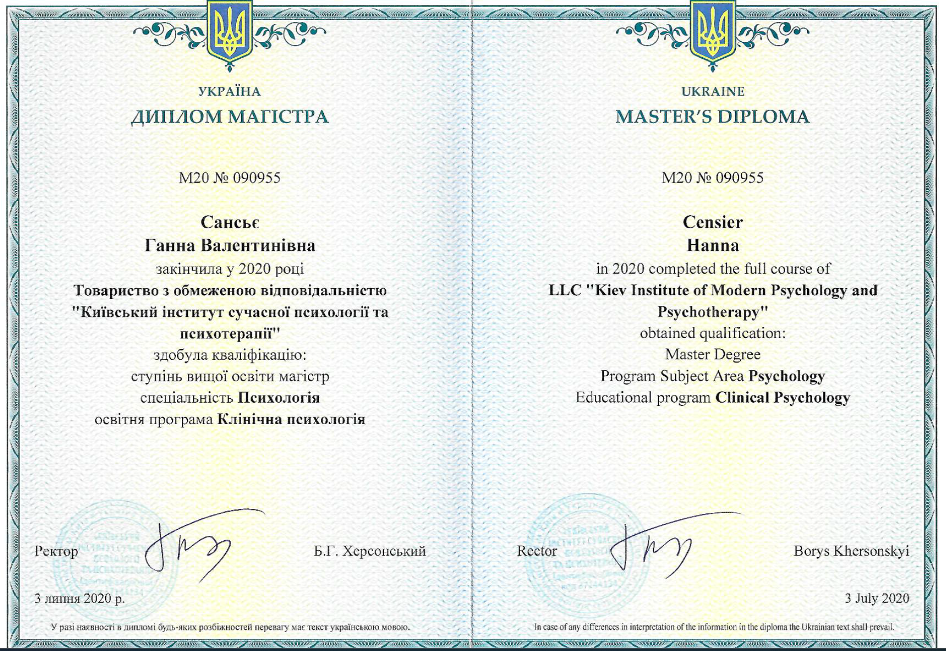 - Київський інститут сучасної псиїології та психотерапії в 2020