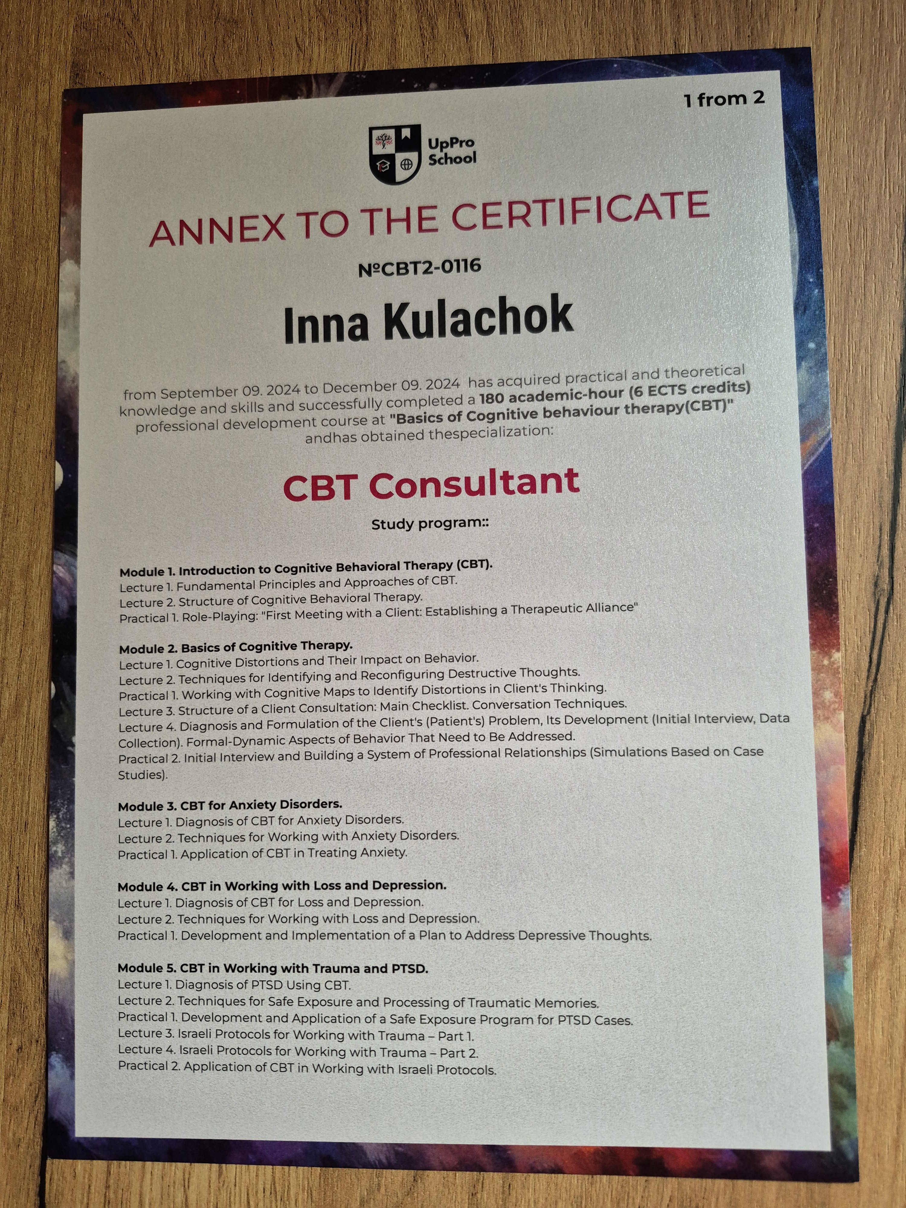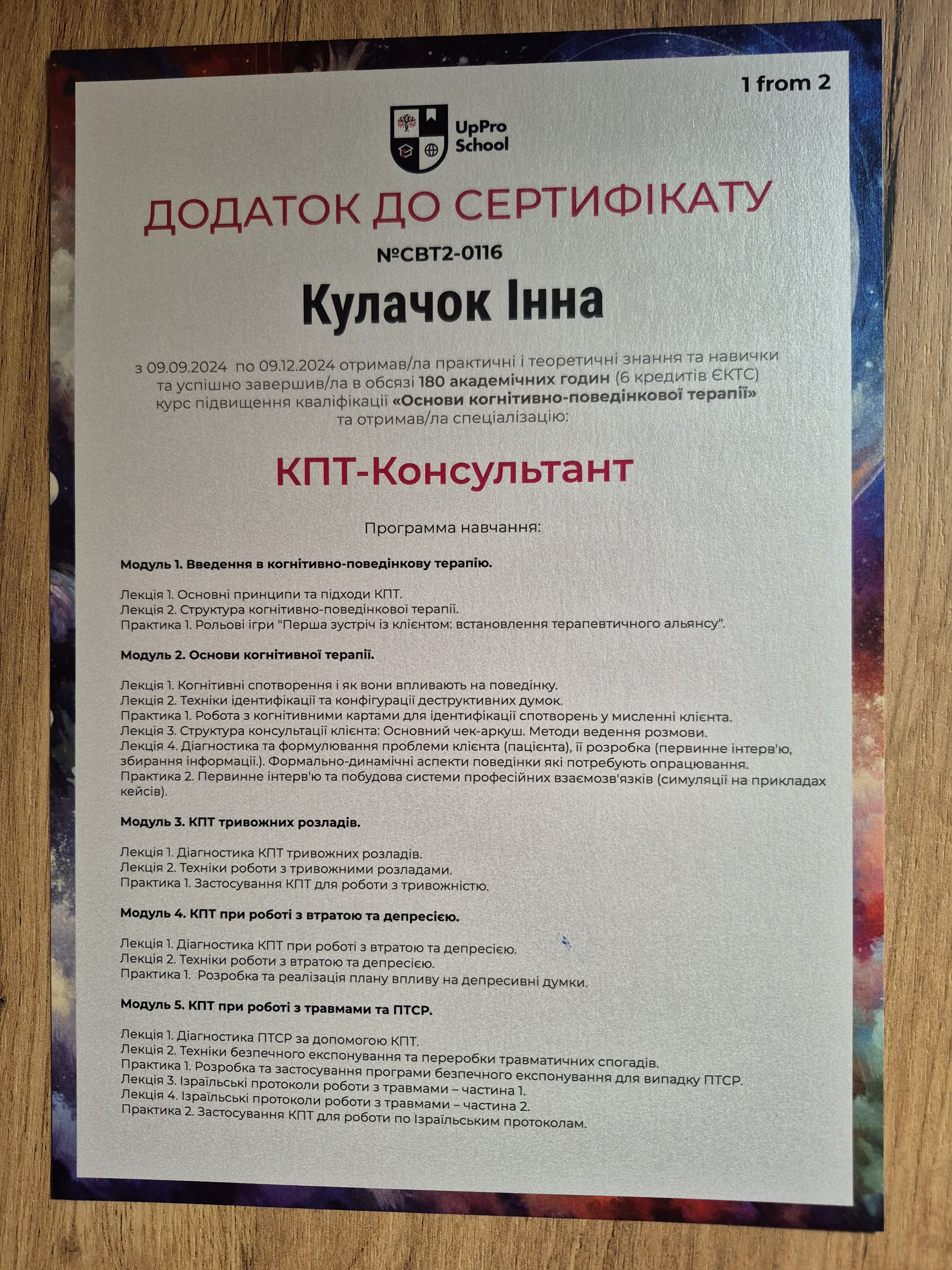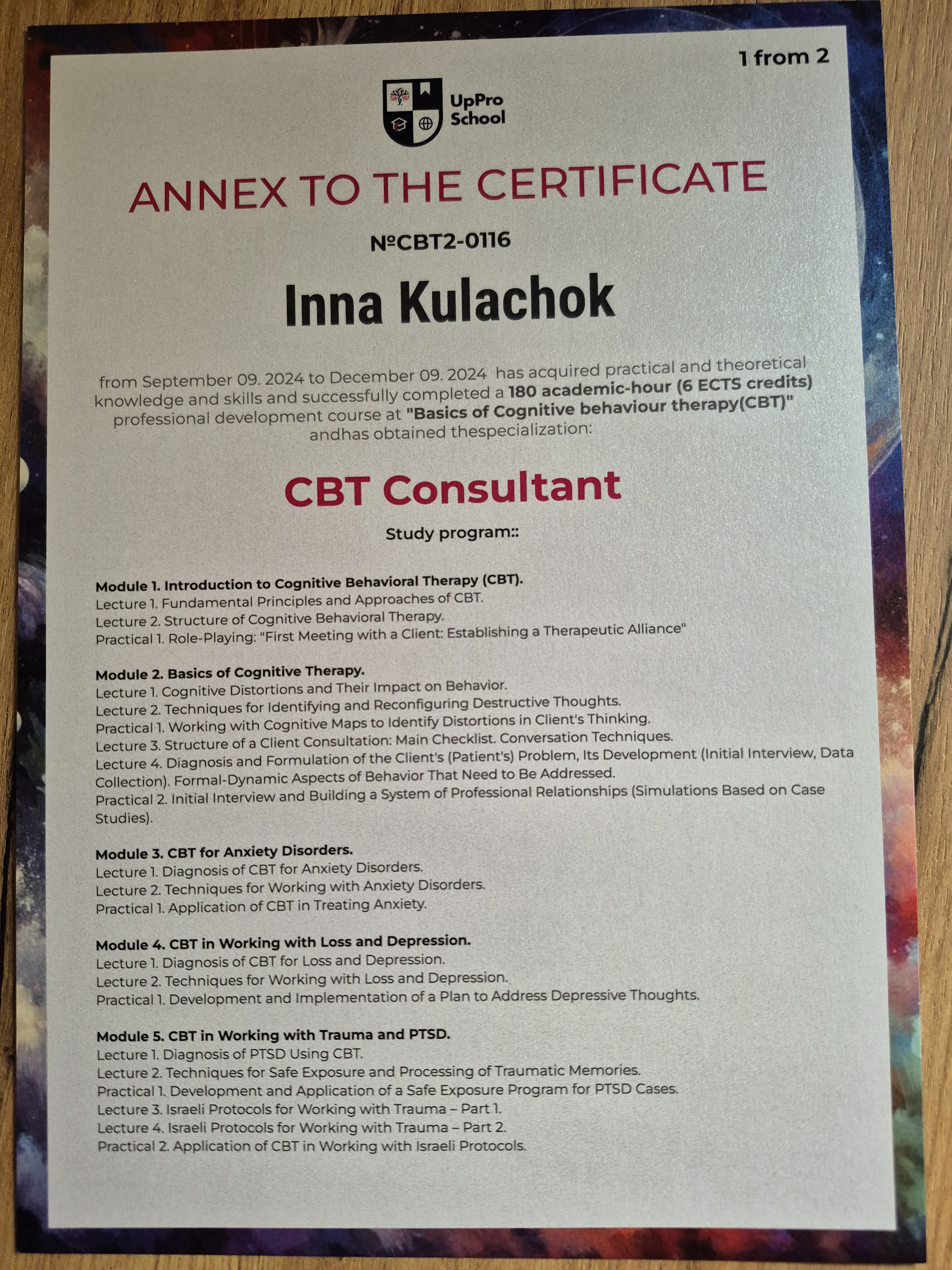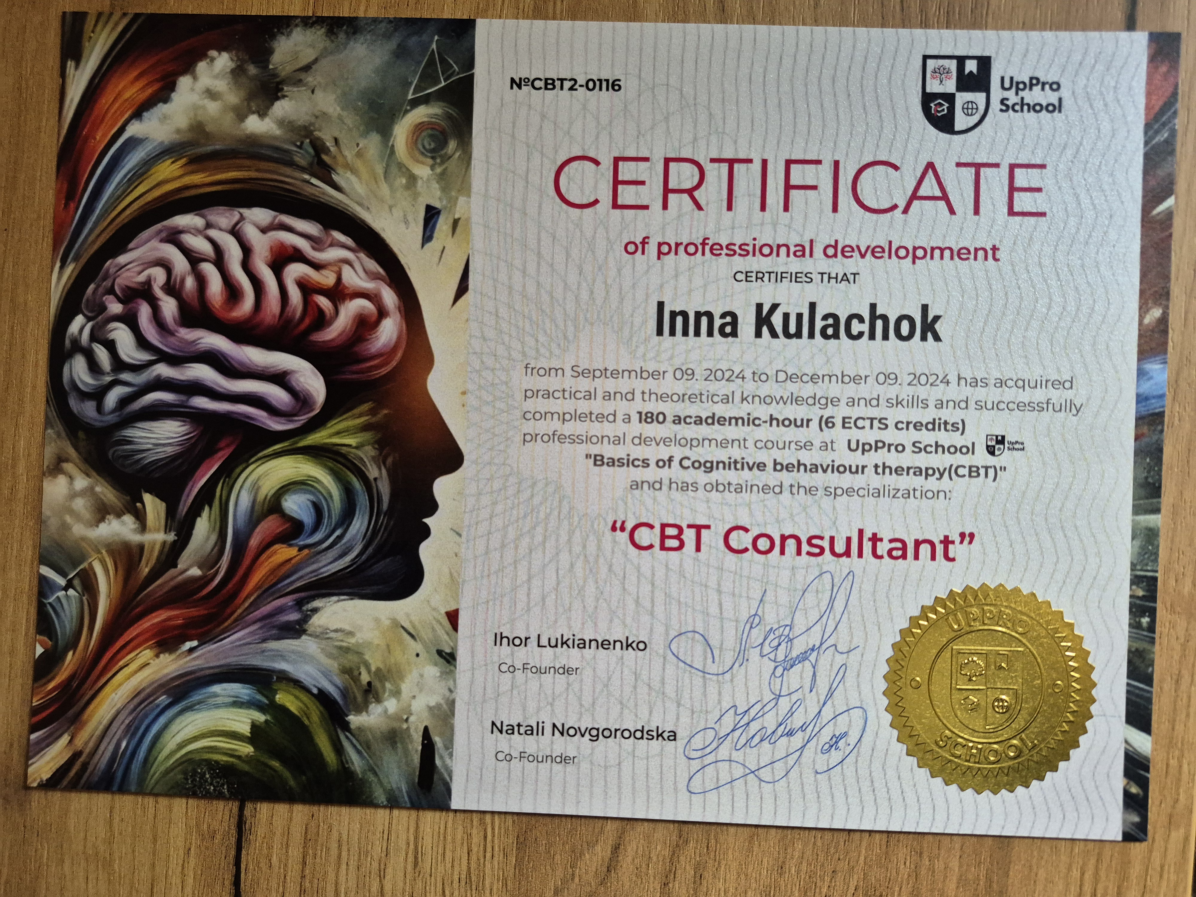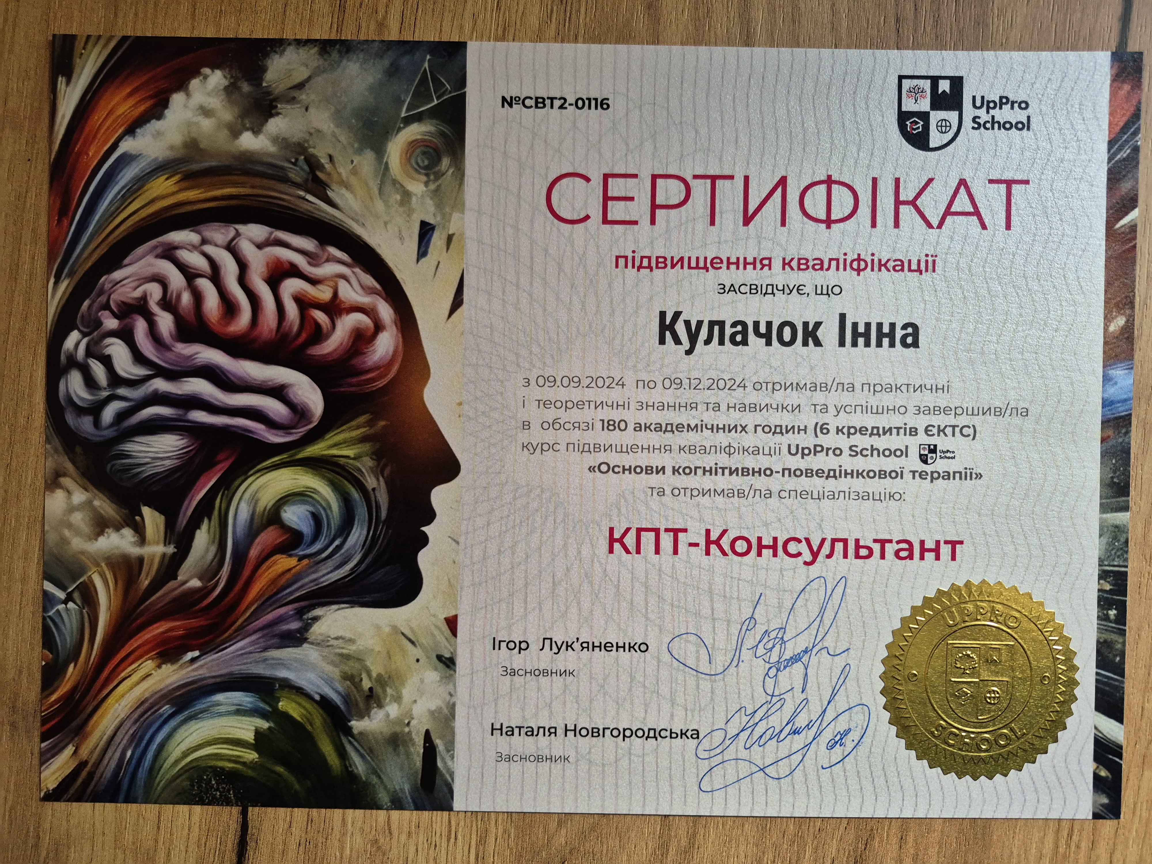 - Сертифікат CBT Consultant з 2024 року