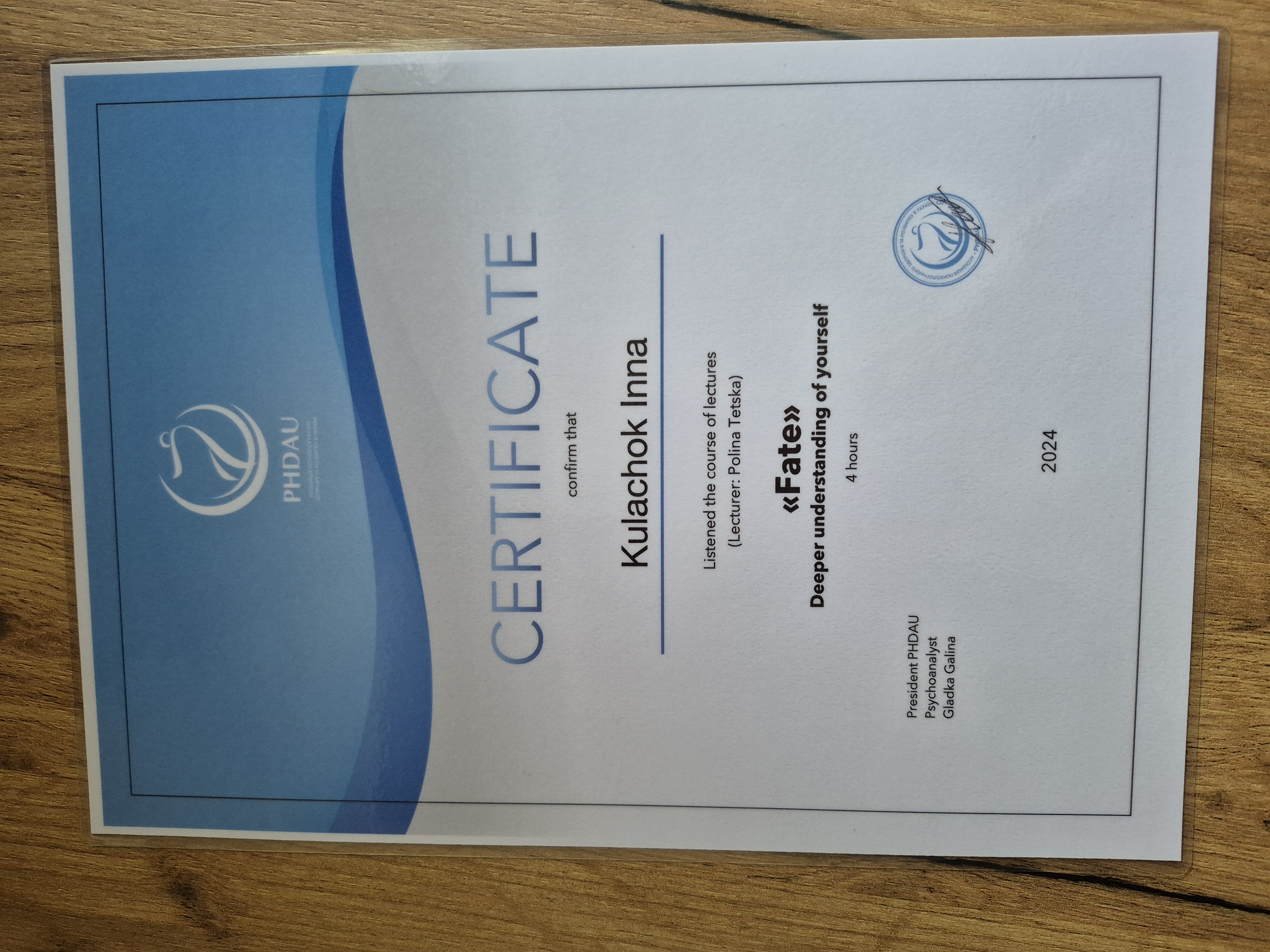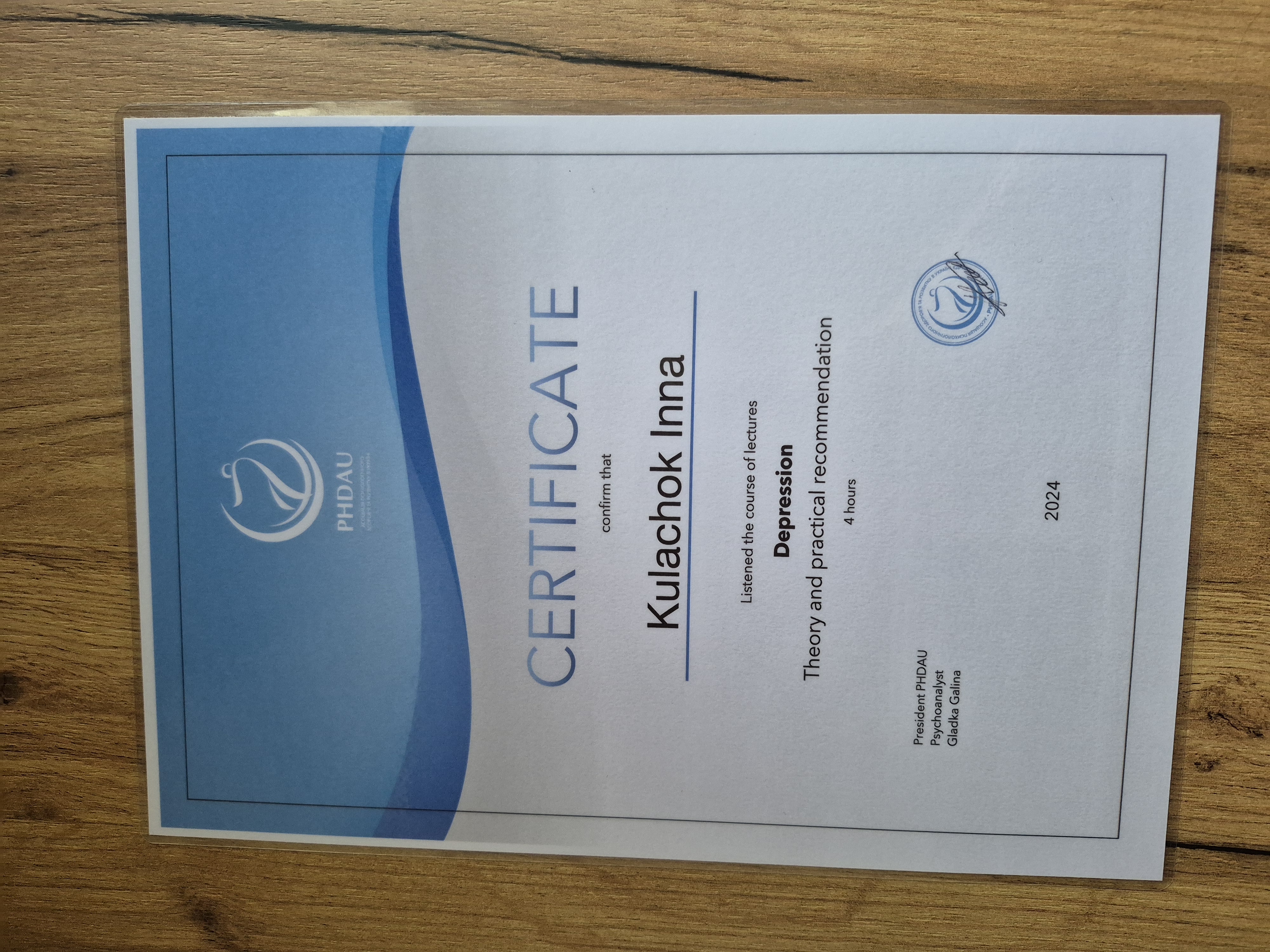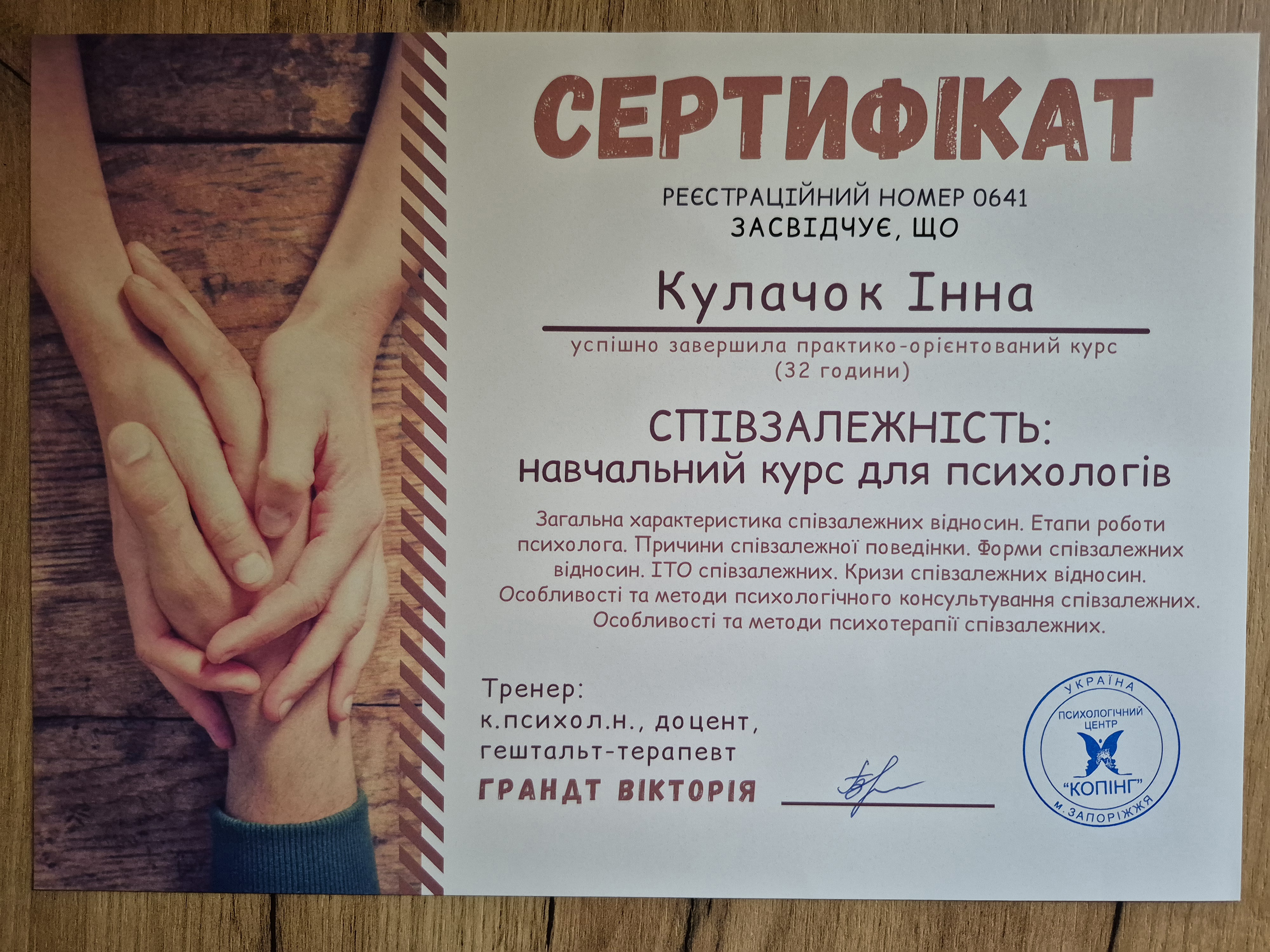 - Сертифікат Співзалежність: навчальний курс для психологів з 2021 року