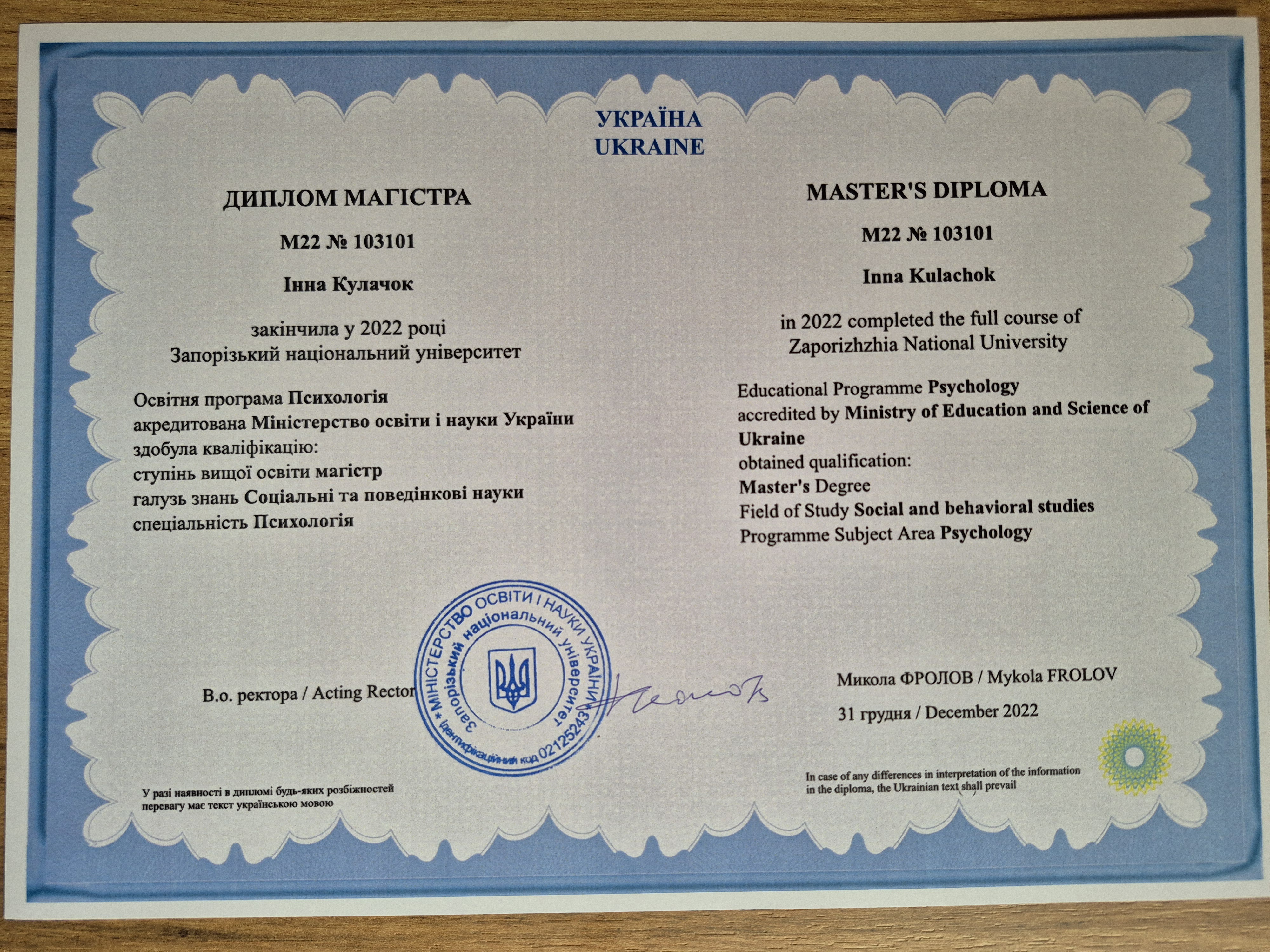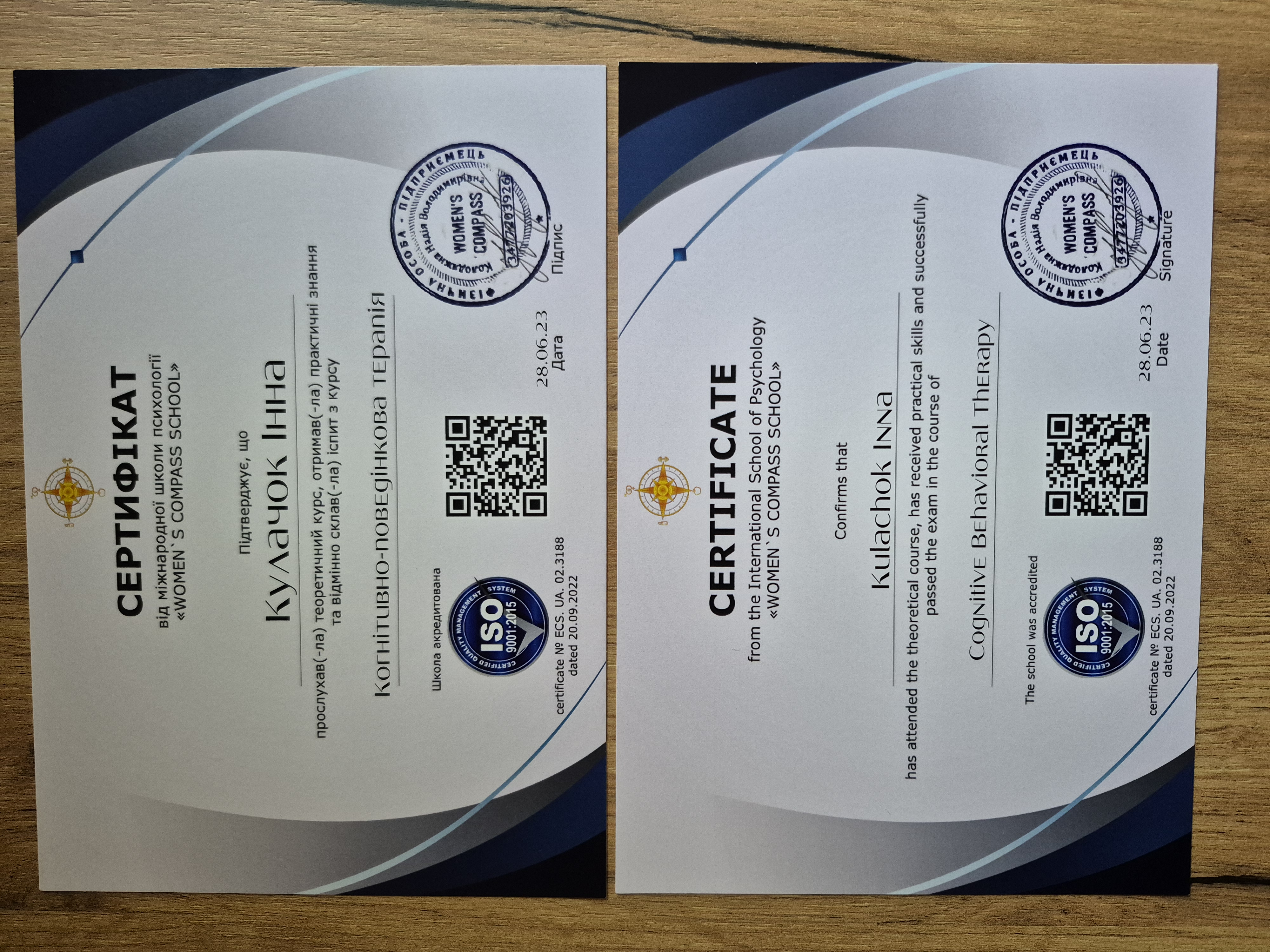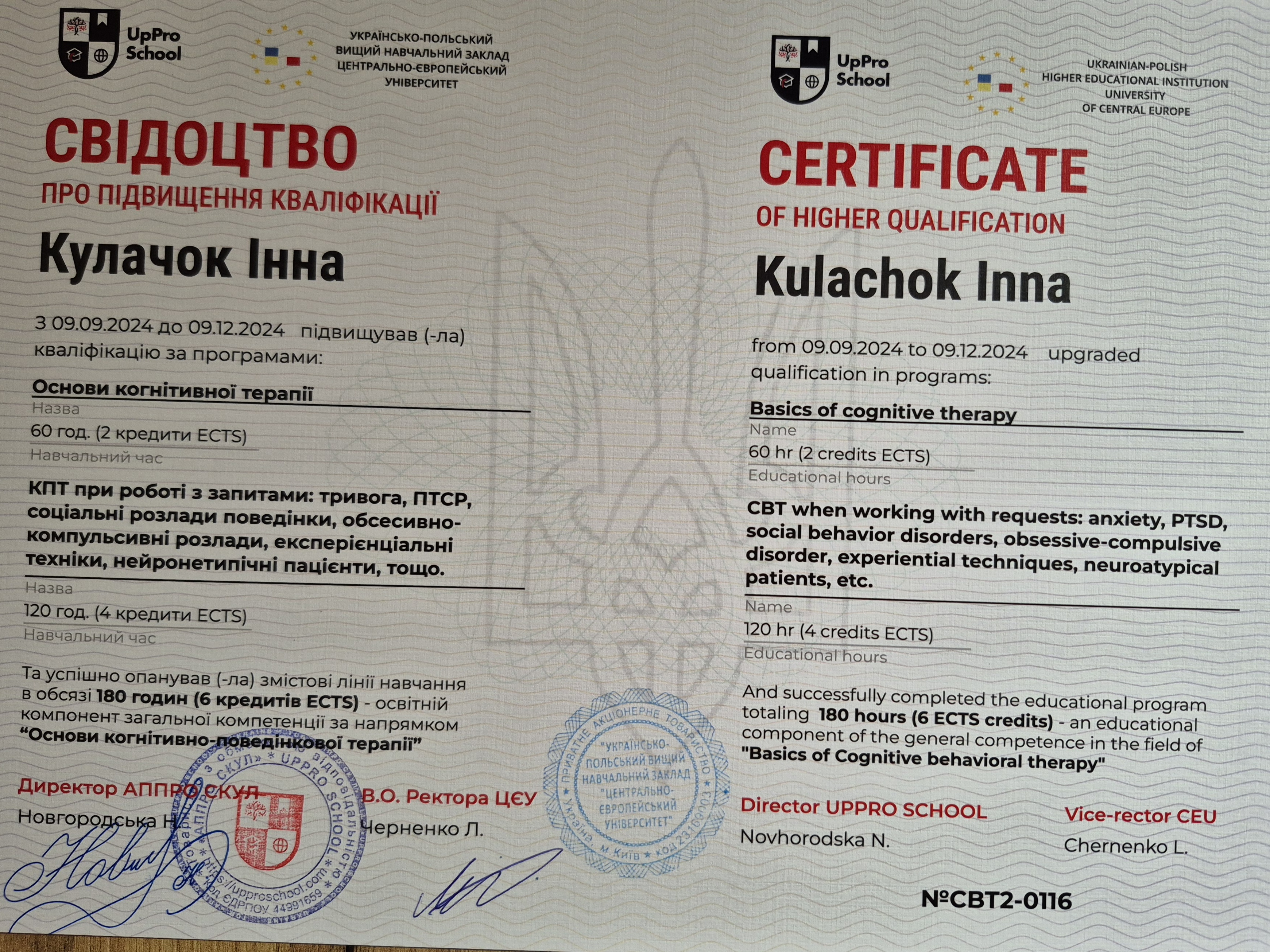 - Сертифікат Когнітивно-поведінкова терапія з 2023 року