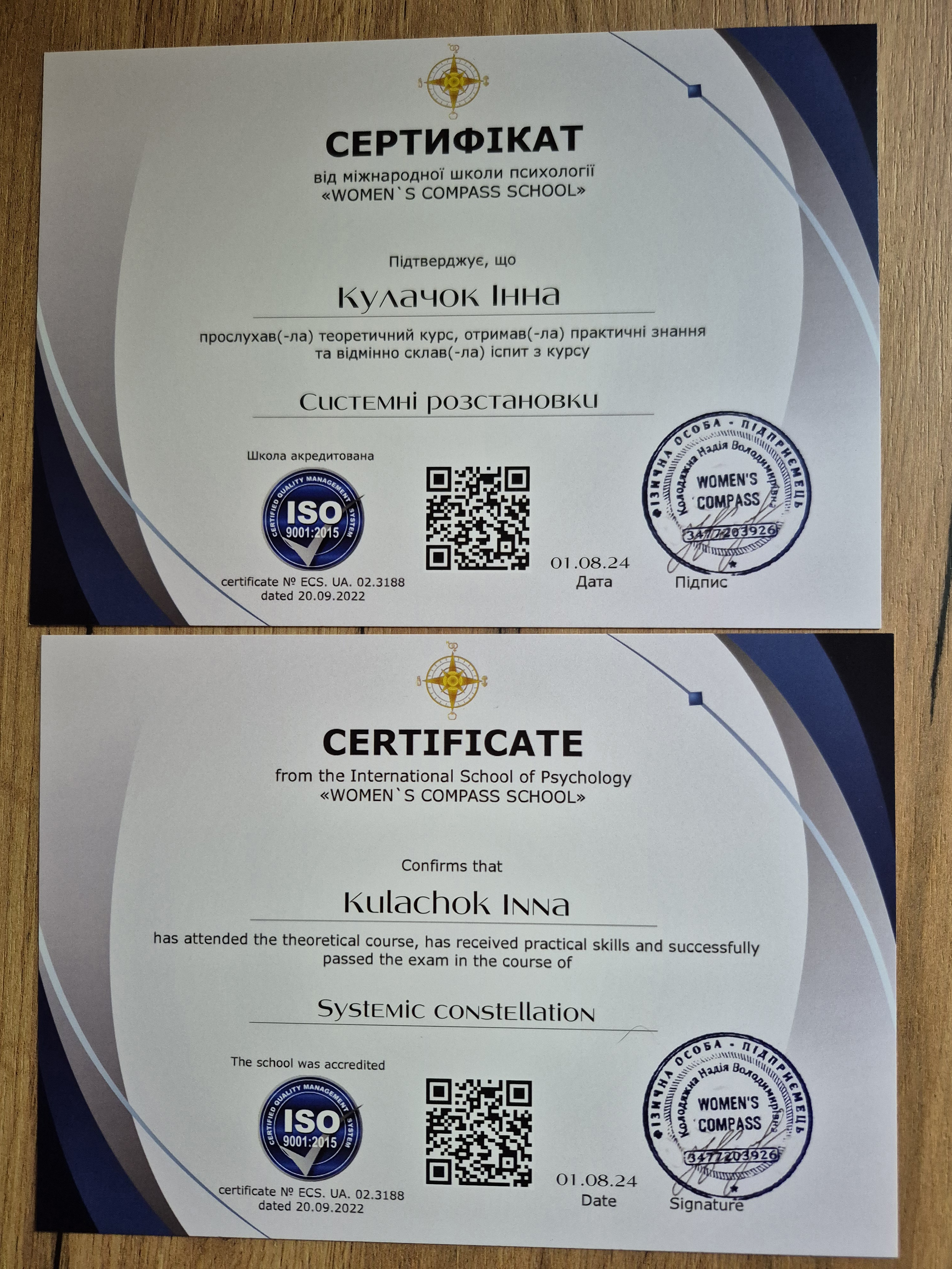 - Сертифікат Системні розстановки з 2024 року