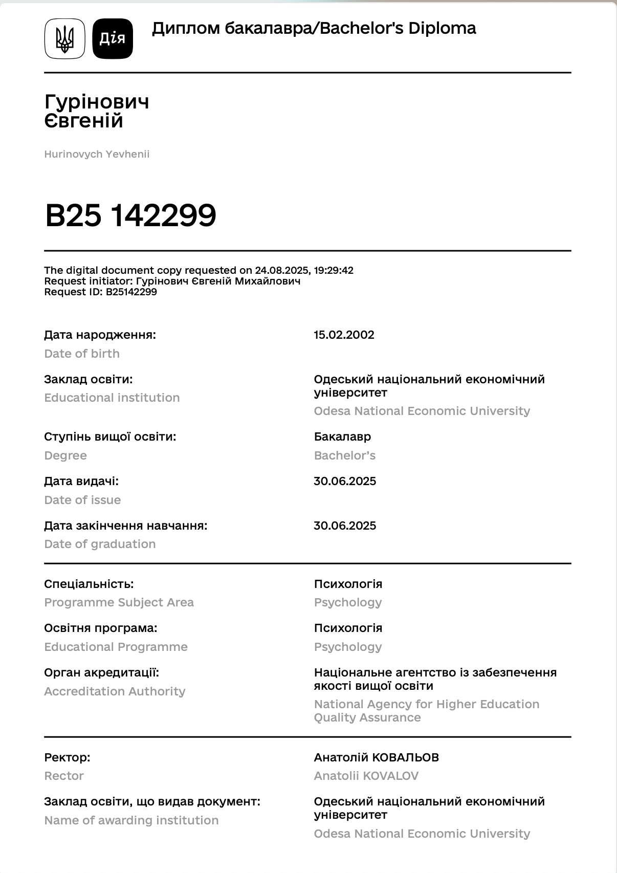 - Практичний психолог - "Полімат" (2024 - 2025)