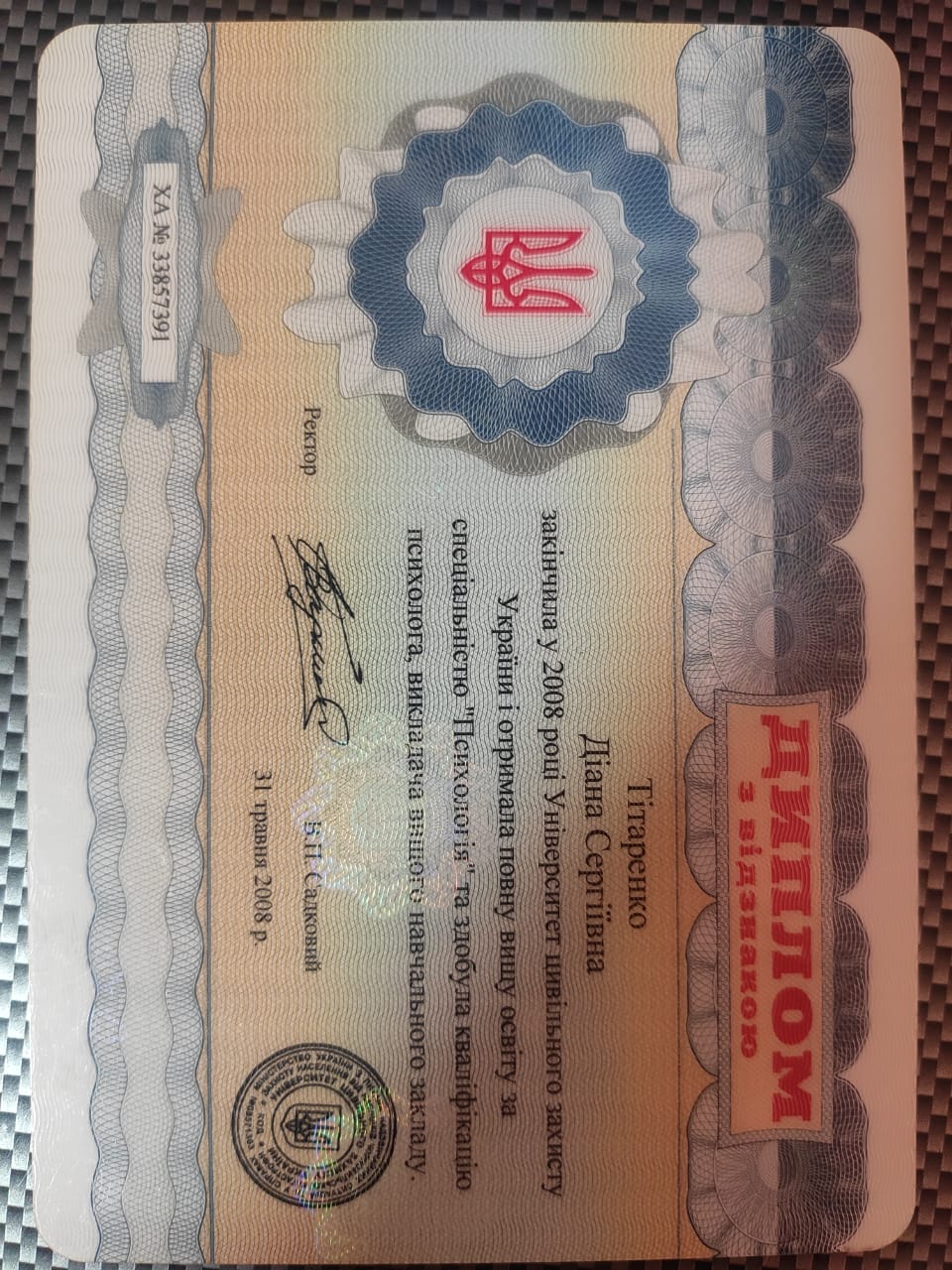 Кандидат психологічних наук за спеціальністю "Психологія діяльність в особливих умовах".