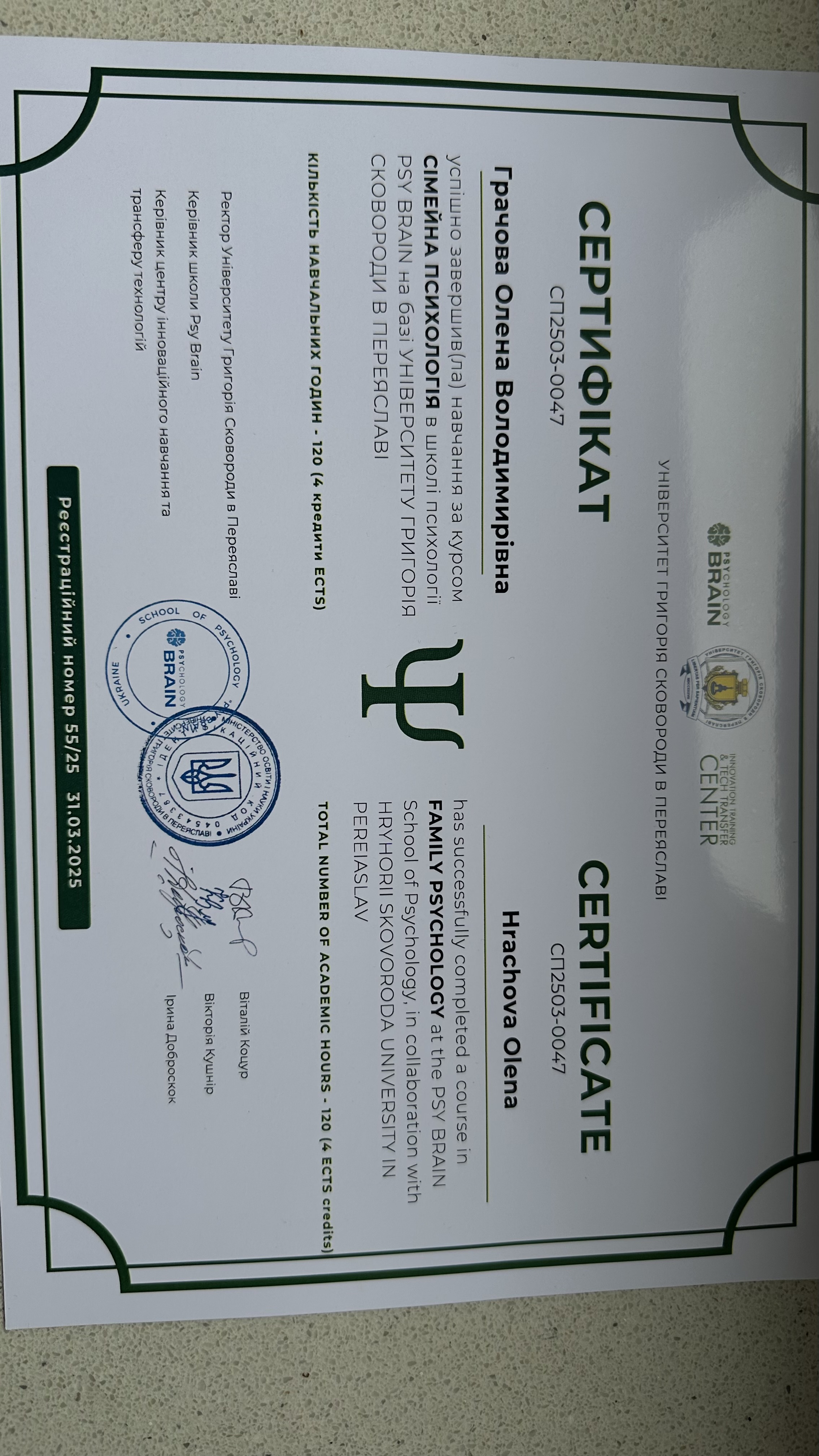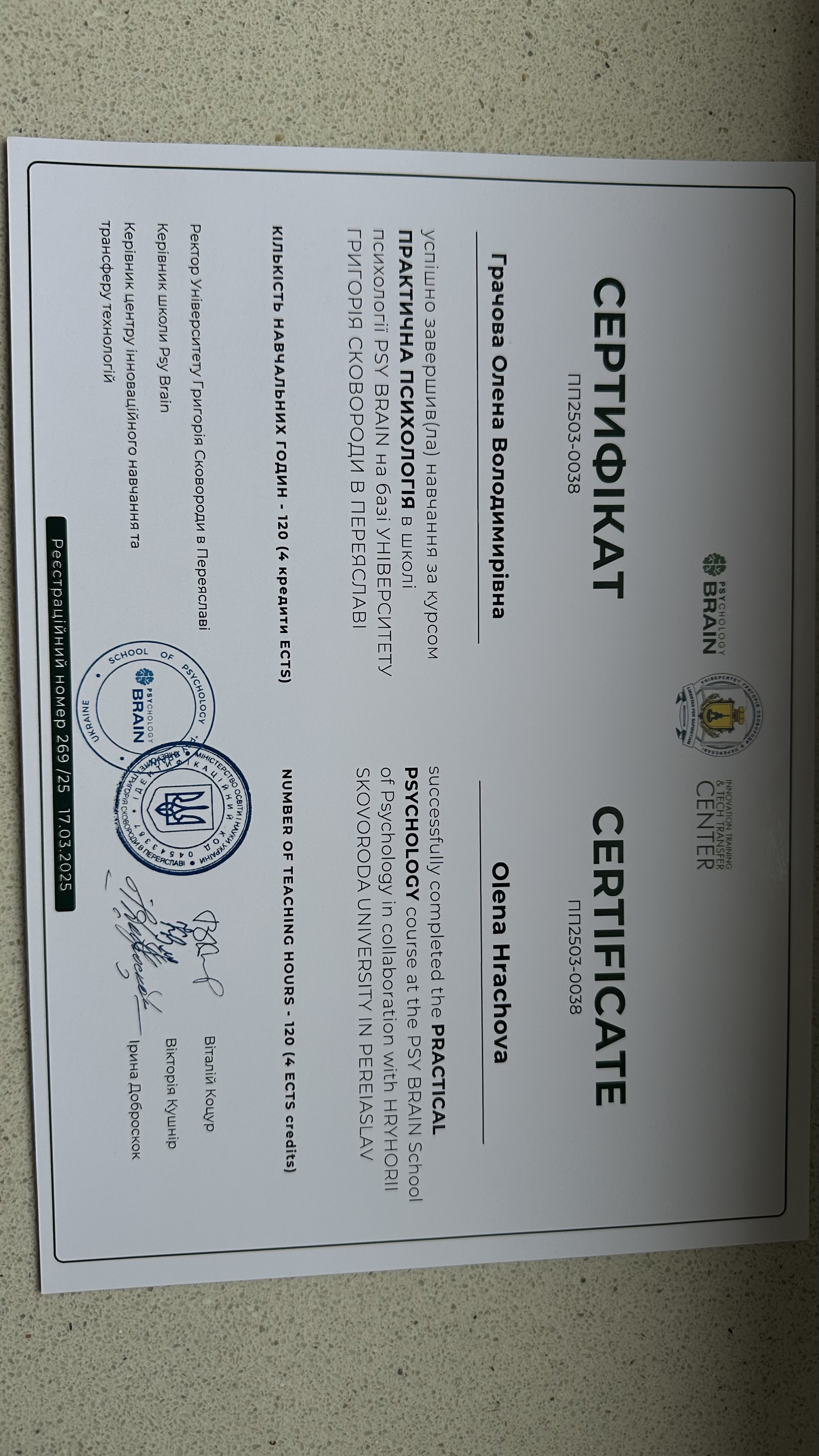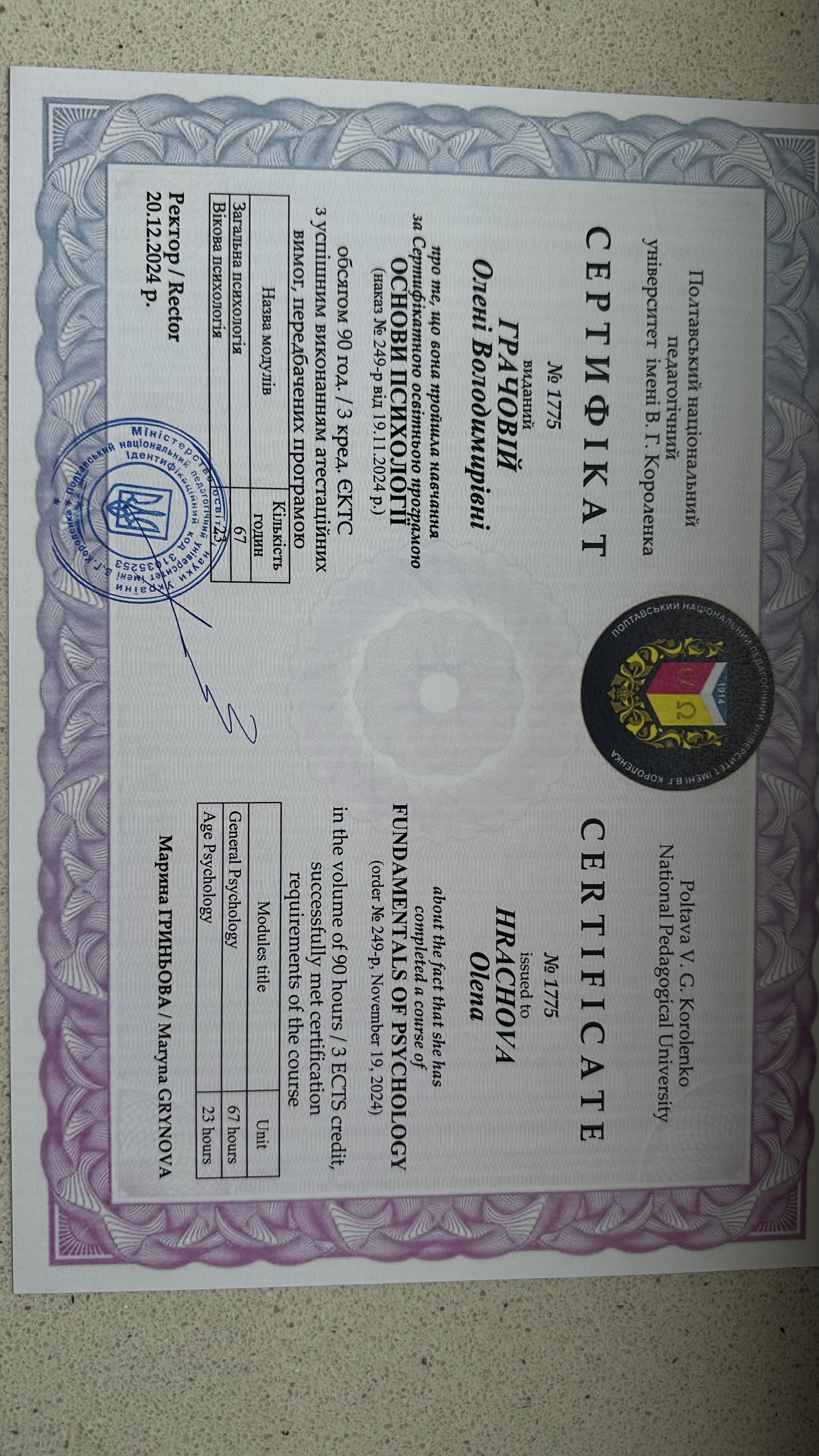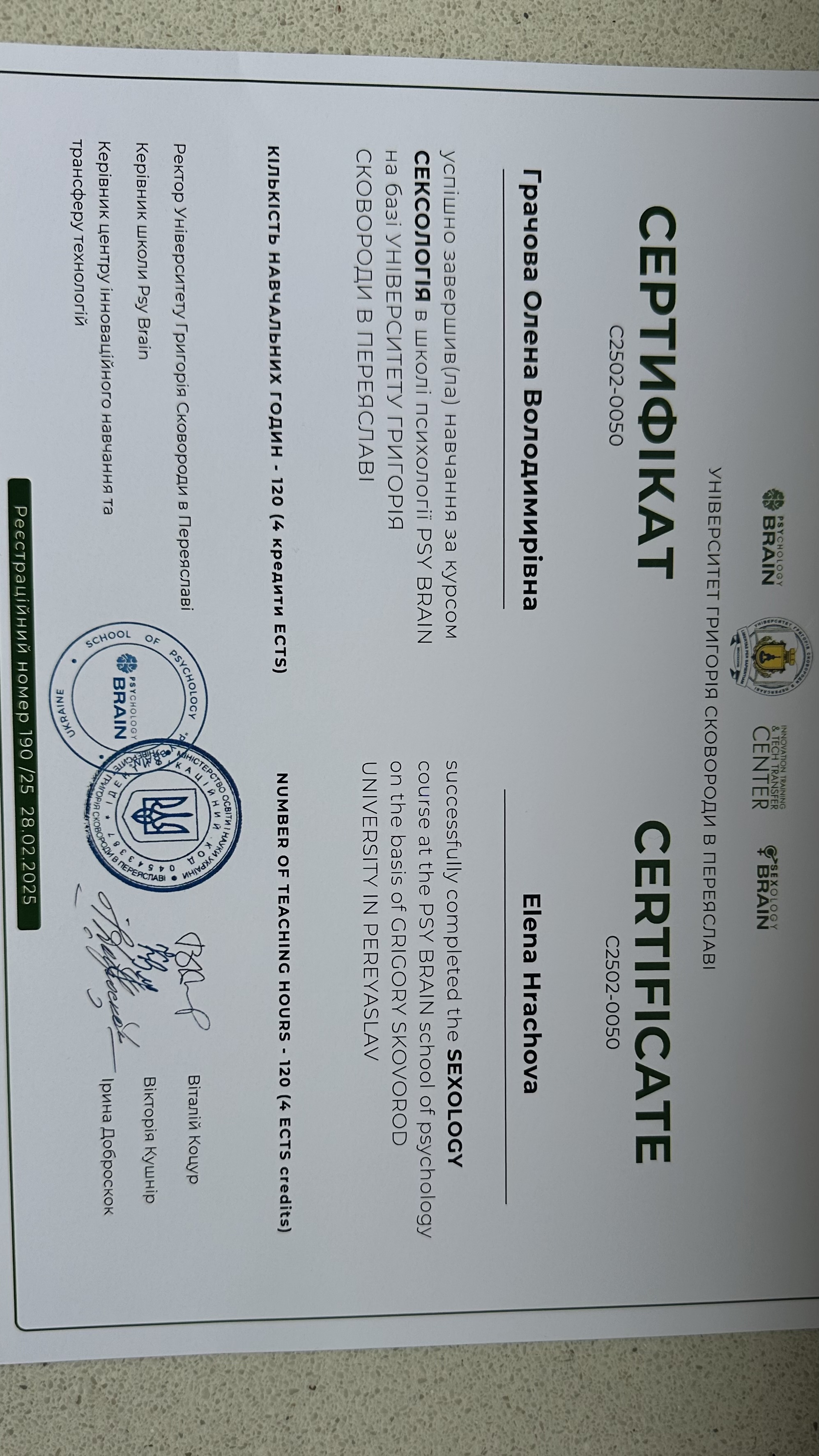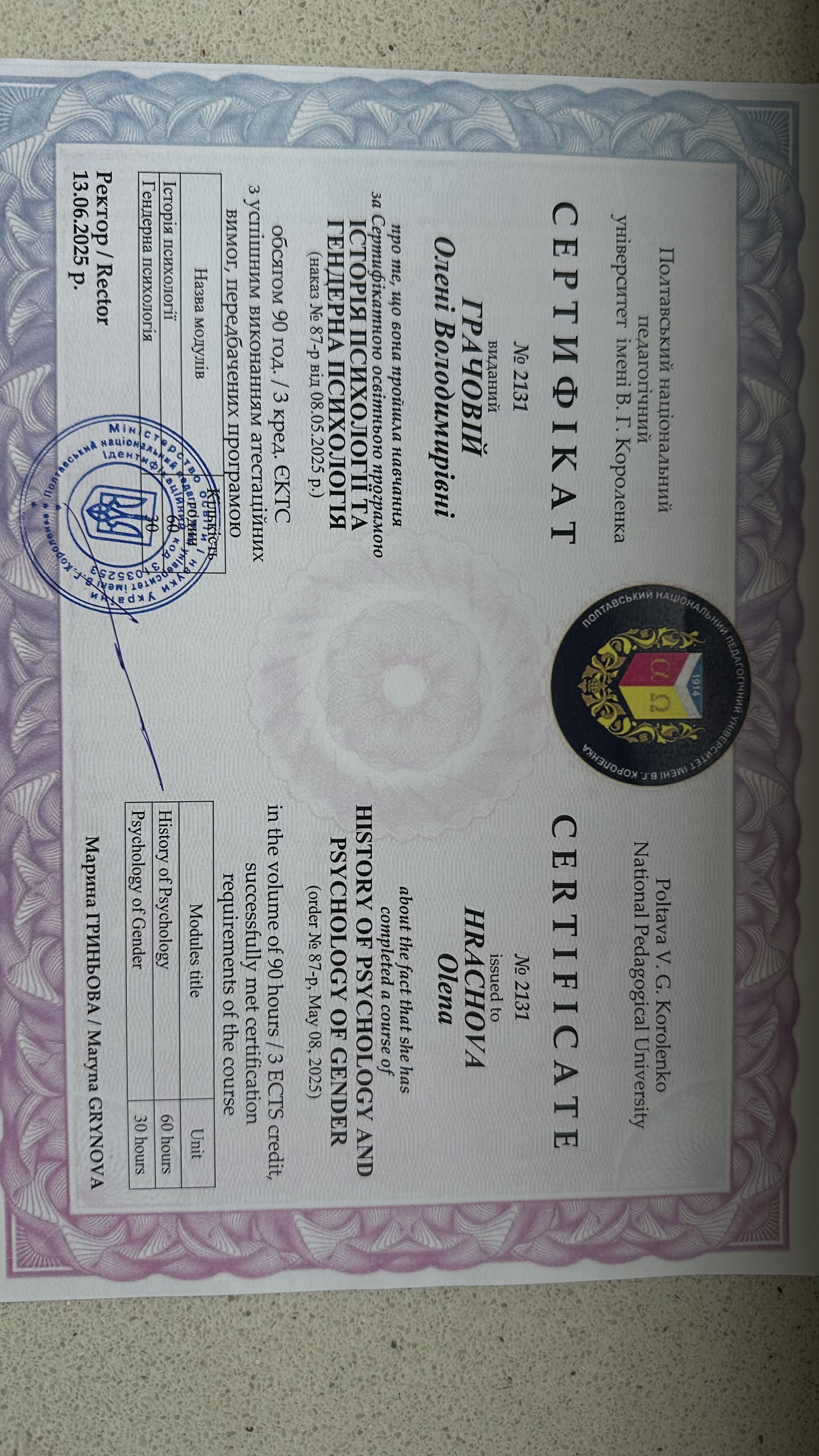 - Сертифікат Історія психології та гендерна психологія з 2025 року