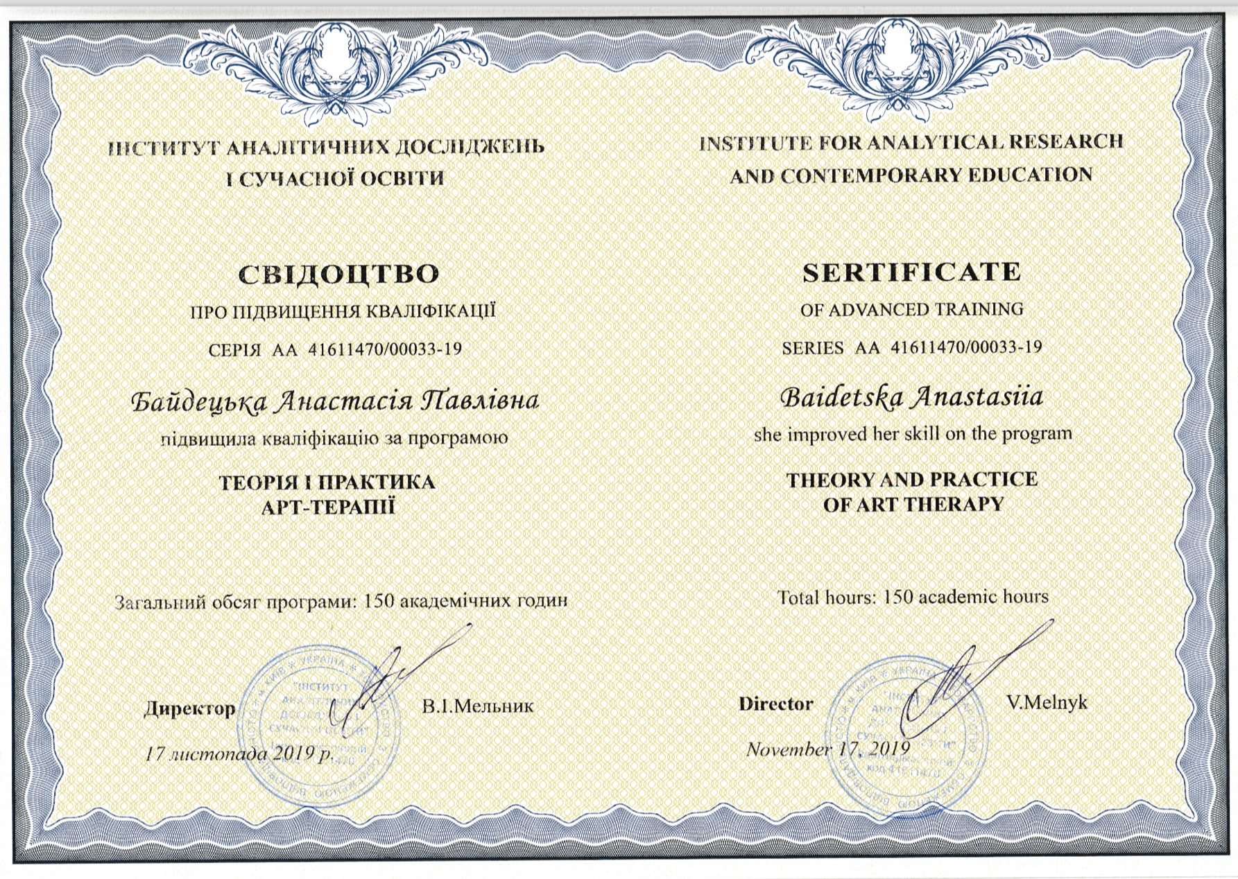 - Сертифікат Арт-терапія з 2019 року