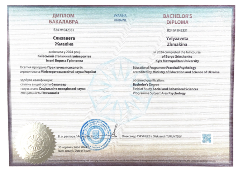 - Сертифікат «Травматичний досвід і ПТСР: інструментарій для психотерапевта» з 2025 року