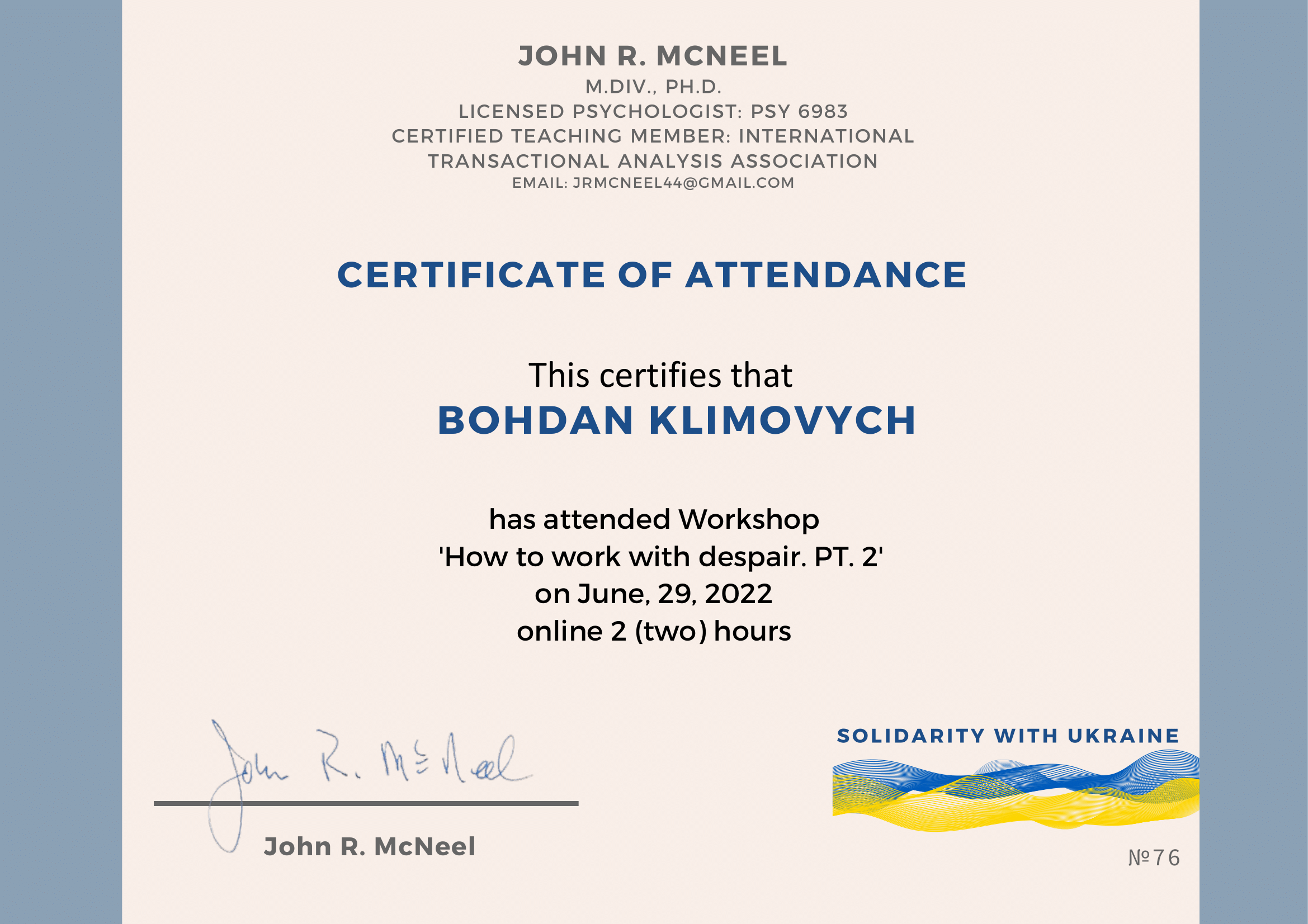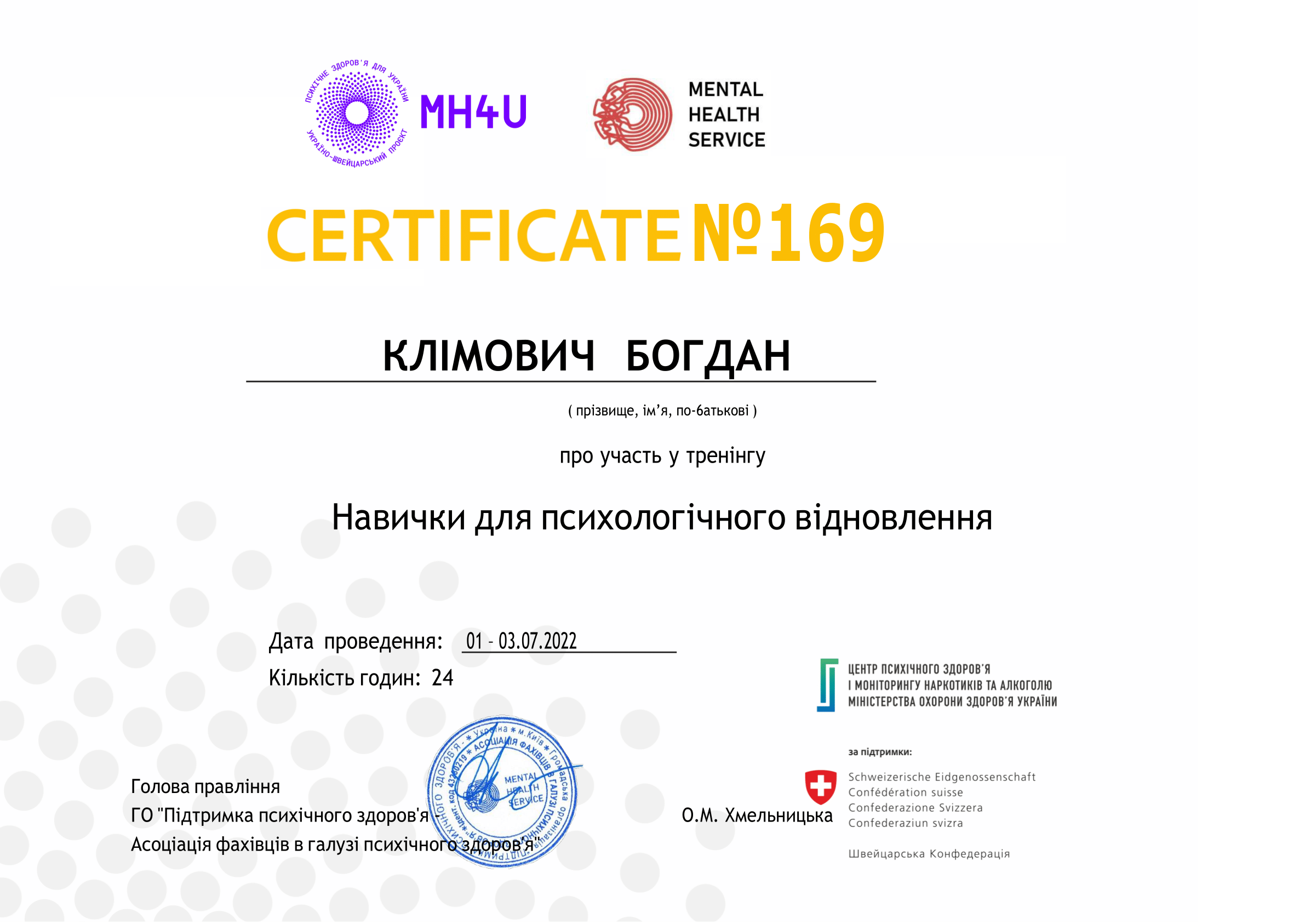 - Сертифікат Базова психологічна допомога в умовах війни з 2022 року