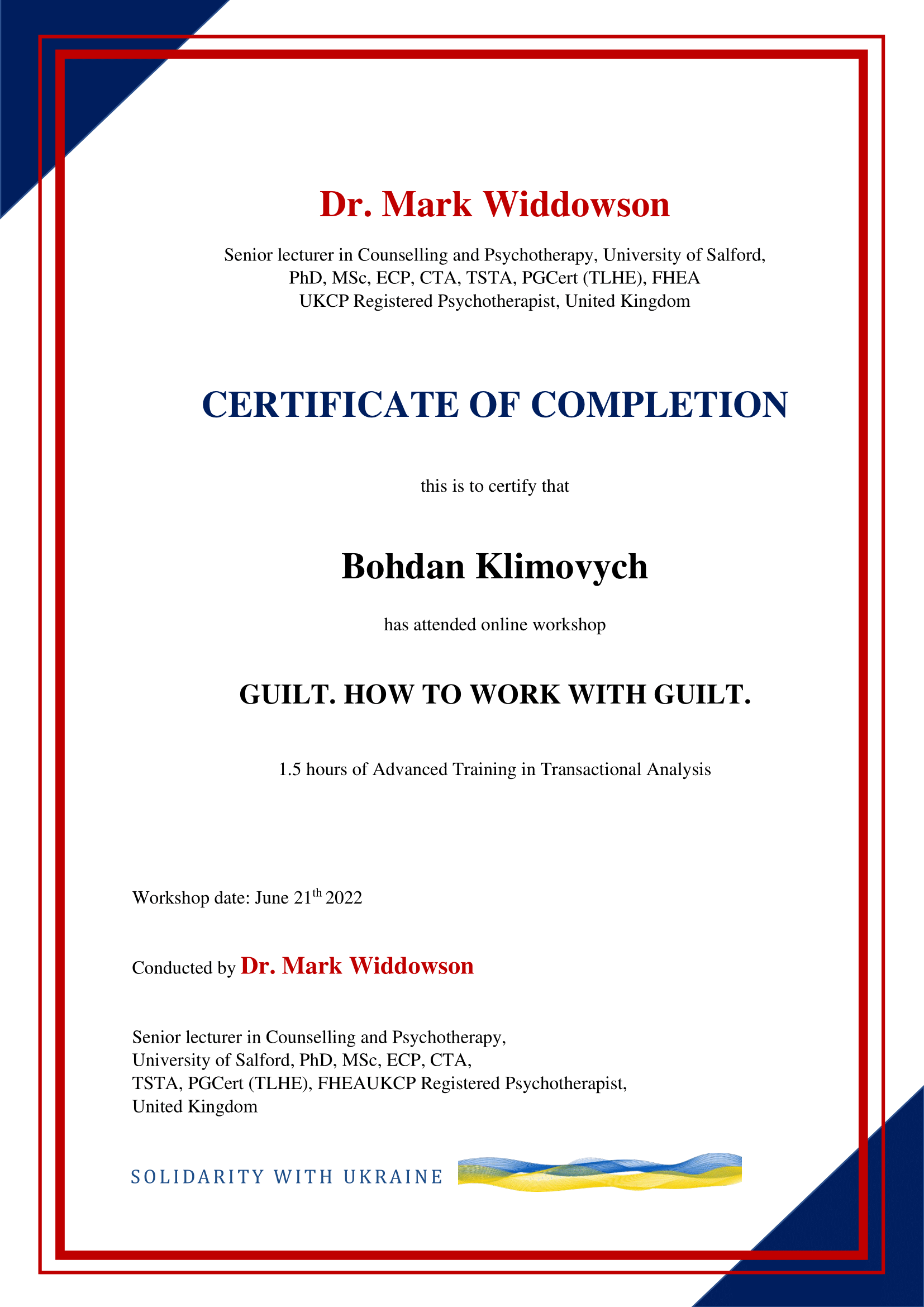 - Сертифікат Психологія стресу та способи боротьби з ним з 2022 року