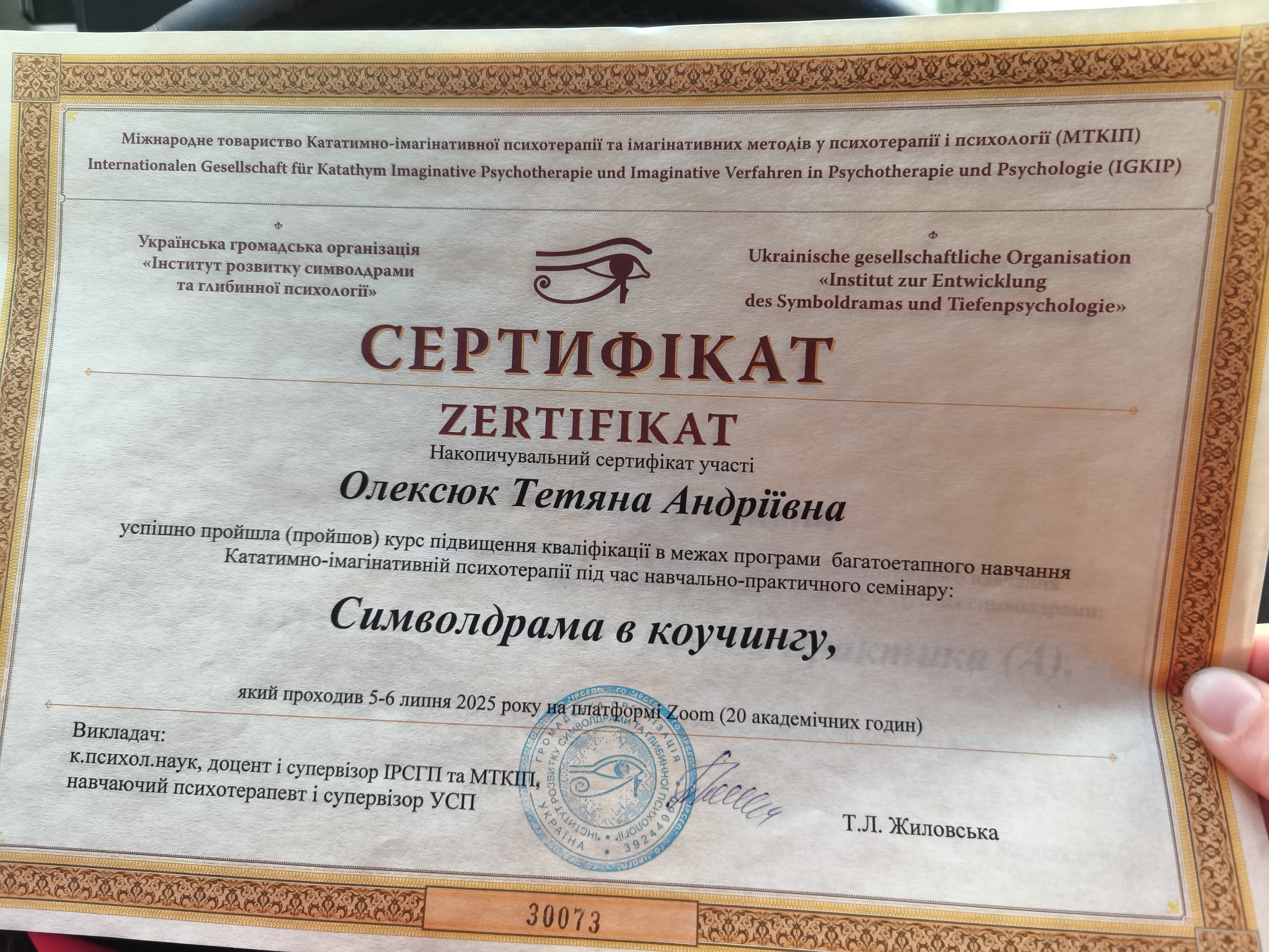 - Сертифікат Символдрама у Коучингу з 2025 року