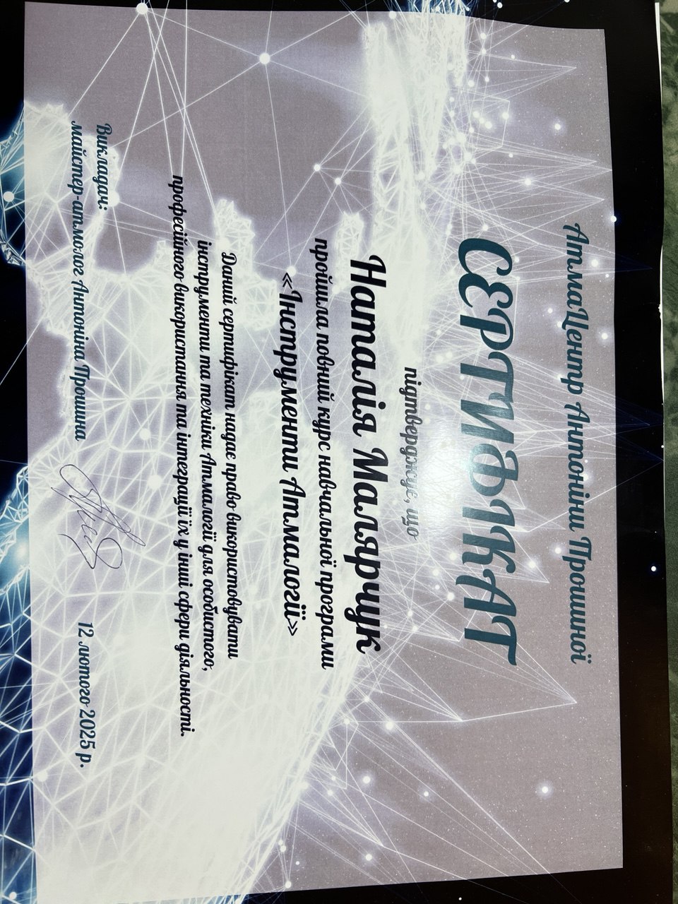 - Сертифікат Інструменти атмалогіі з 2025 року