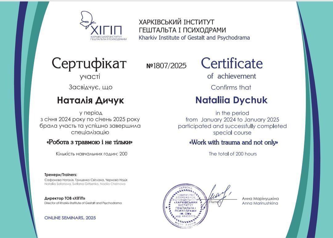 Індивідуальний підхід – кожна історія унікальна, тому я використовую методи, які підходять саме вам.