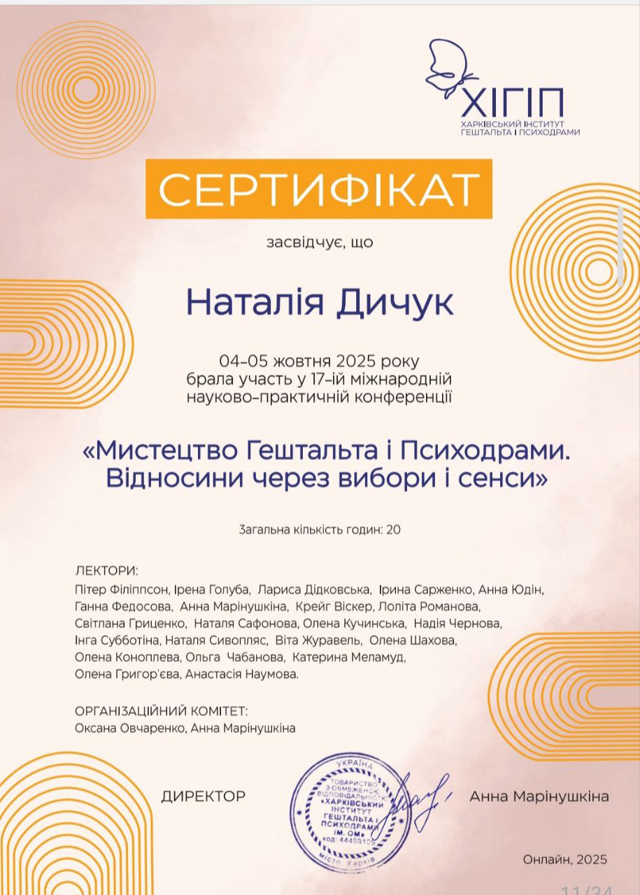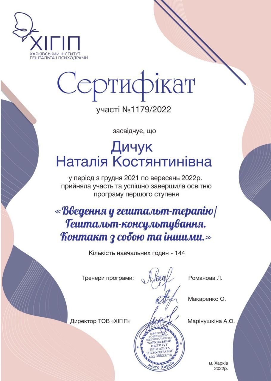 - Харківський Інститут Гештальту та Психодрами в 2022
