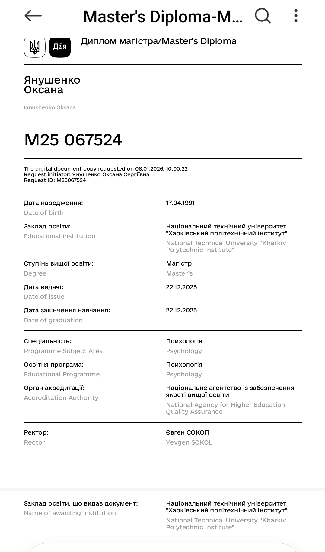 Психолог, працюю в інтегративному підході. Кінезіолог (робота з психосоматикою).