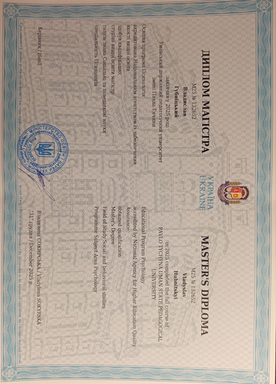 Мене звати Владислав. Я — магістр психології, працюю в методі когнітивно-поведінкової терапії (КПТ) — це доказовий підхід, який допомагає реально змінювати стан і спосіб мислення.