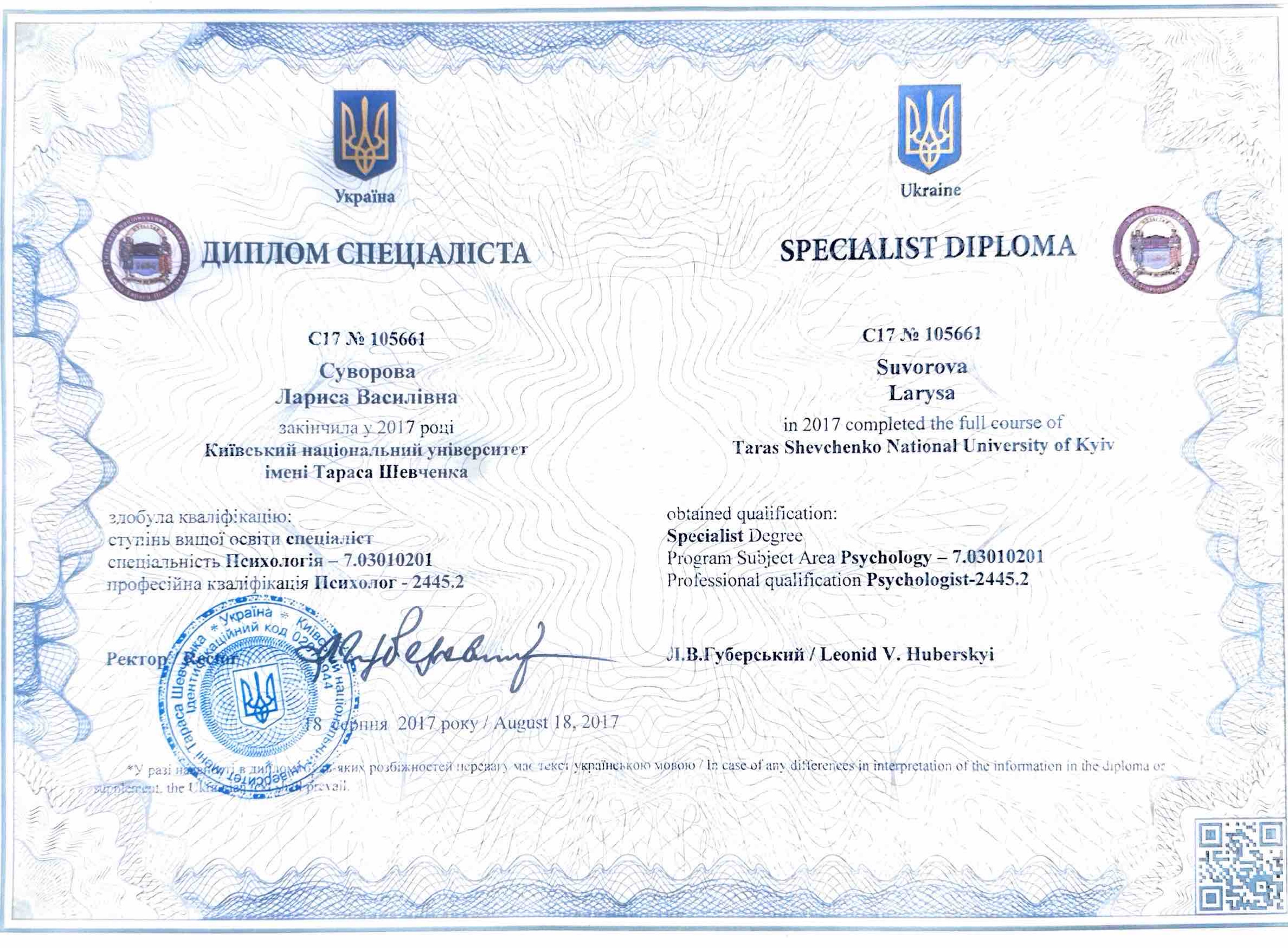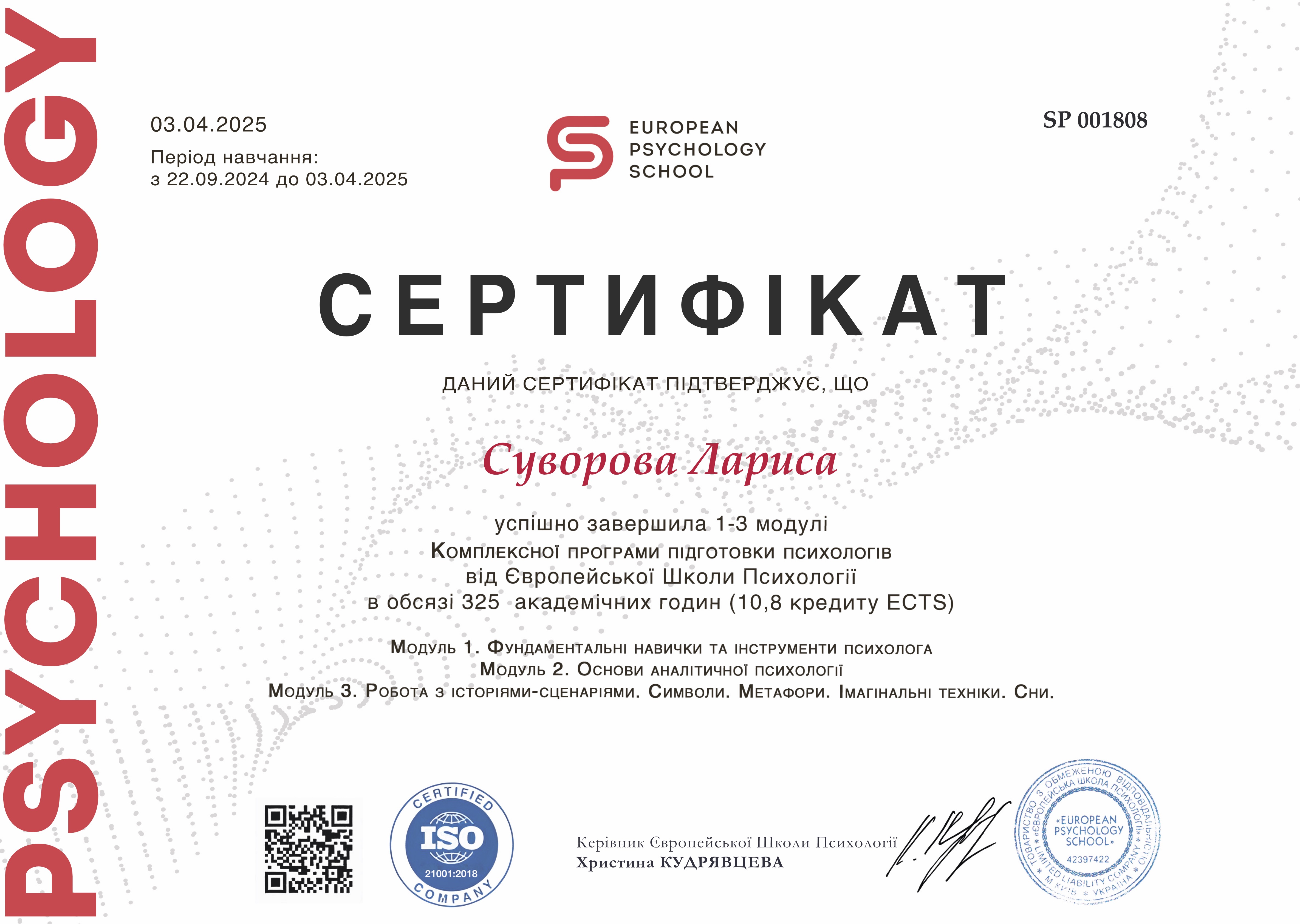 Сертифікат Комплексна програма підготовки психологів з 2025 року