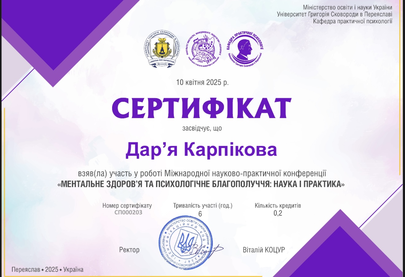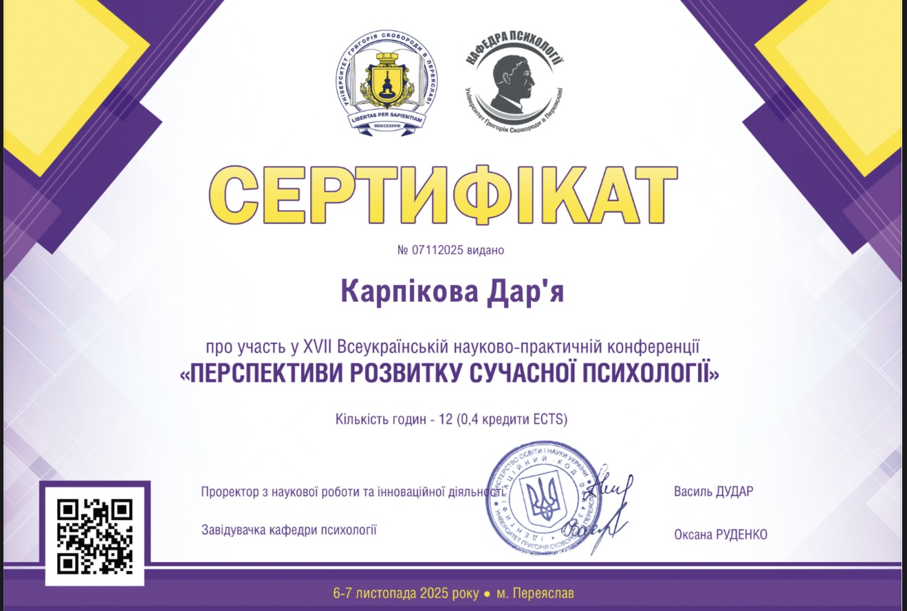 - Сертифікат Сертифікат №07112025 з 2025 року