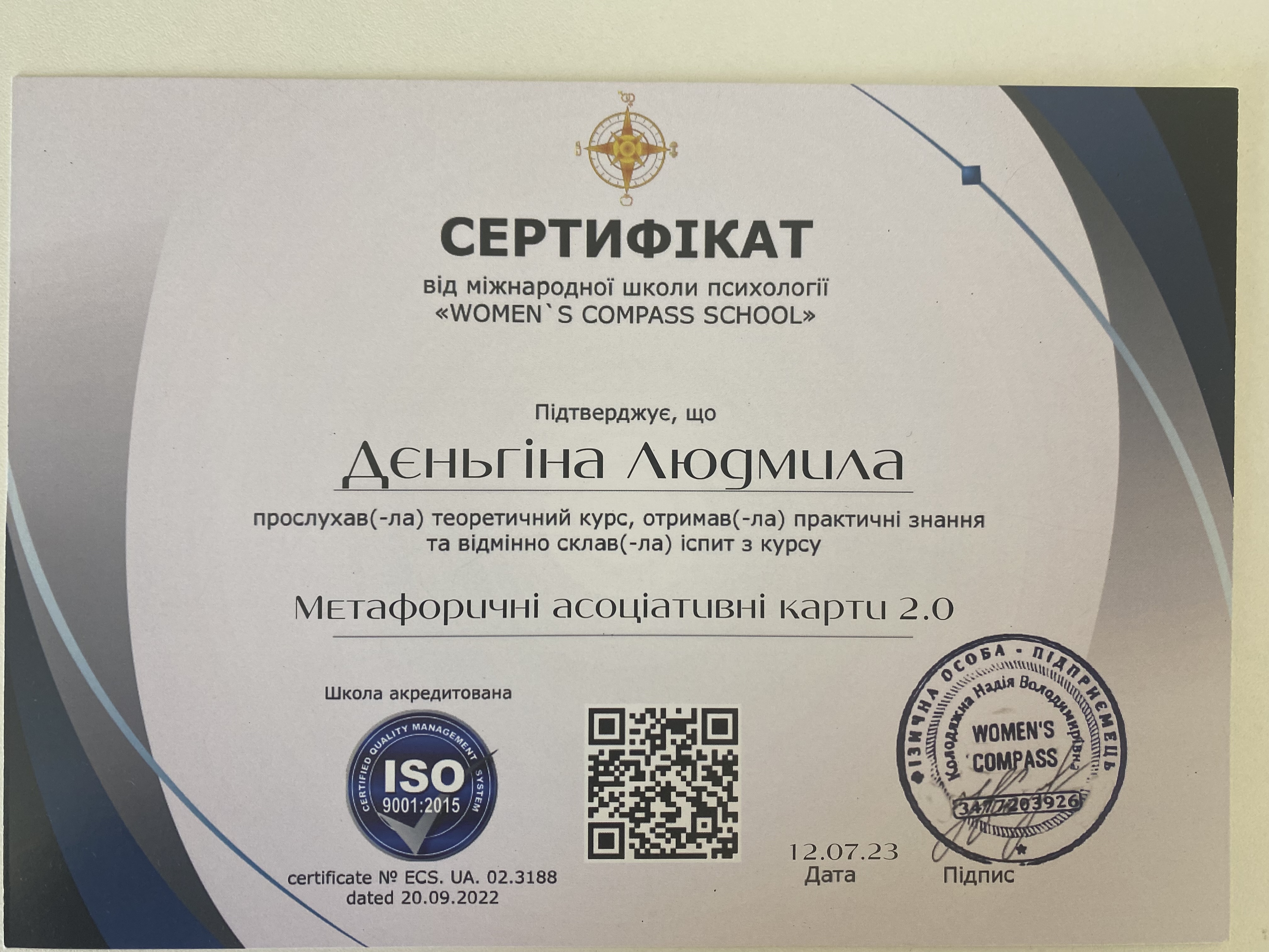 - Сертифікат Метафорічні асоціативні карти з 2023 року