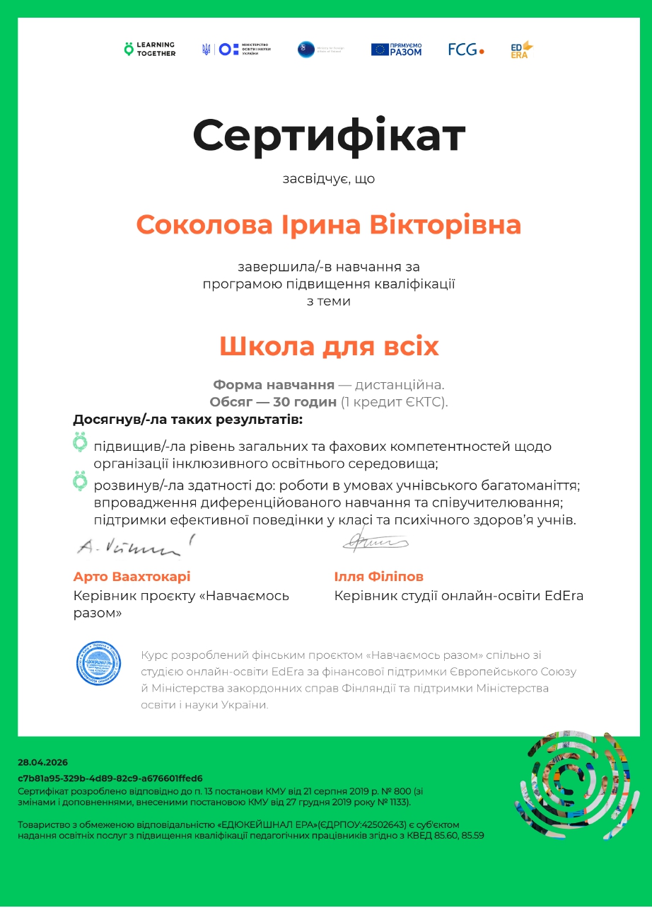 - Сертифікат Школа для всіх з 2026 року